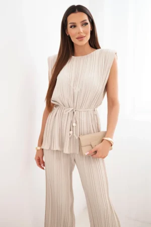 Lengvo audinio palaidinė su klostėmis ir sage “ERICA” – šviesi mėlyna