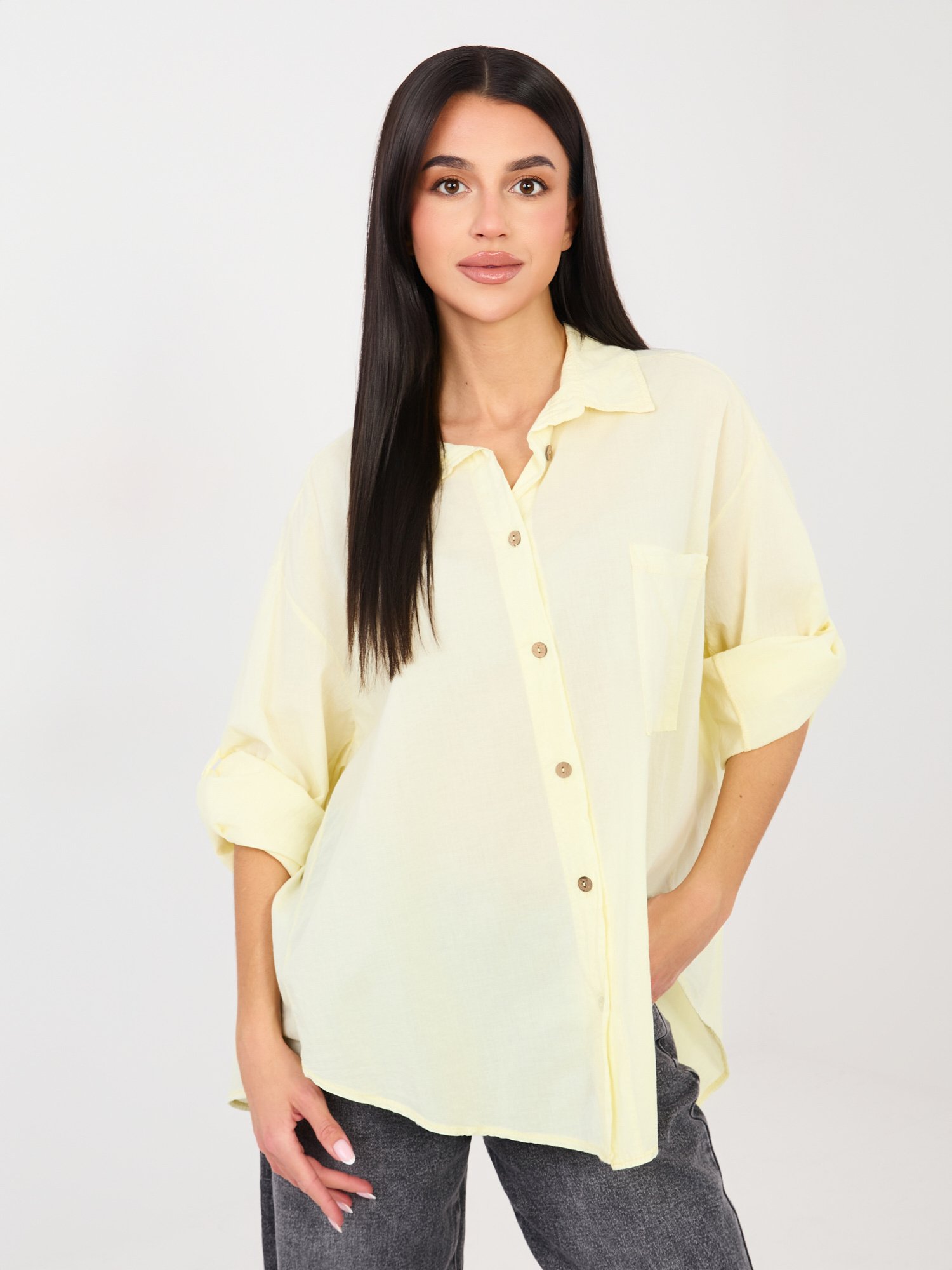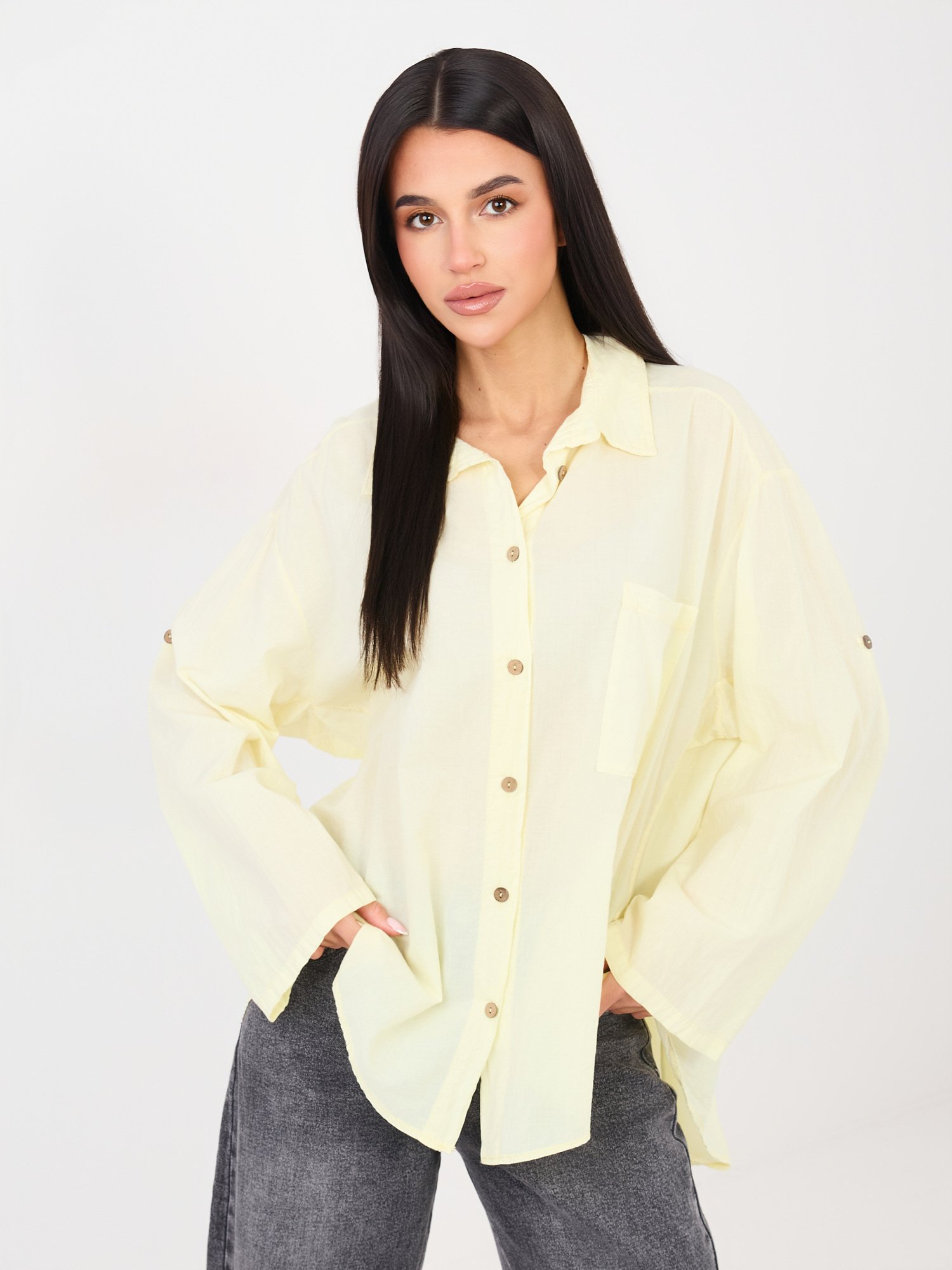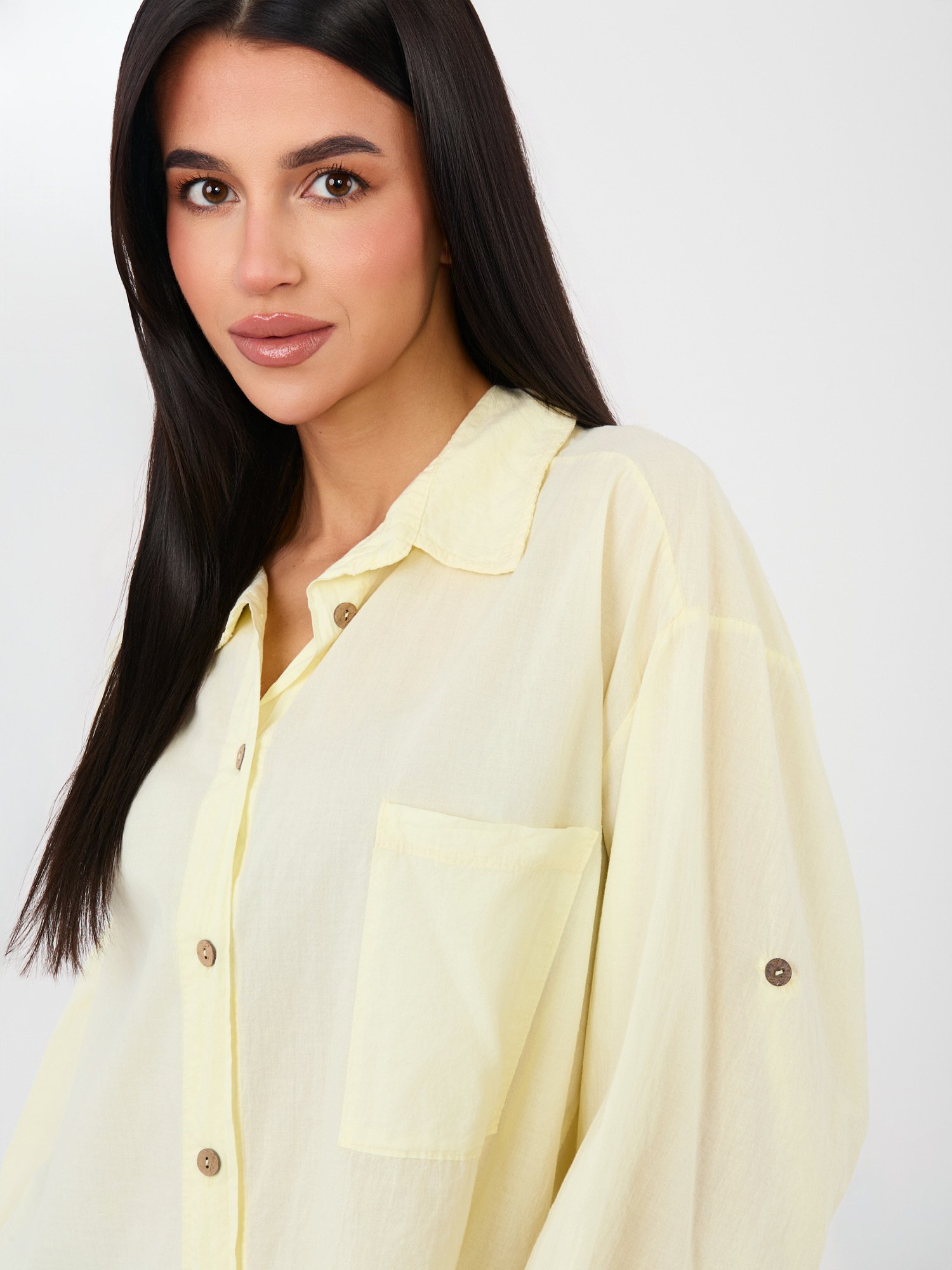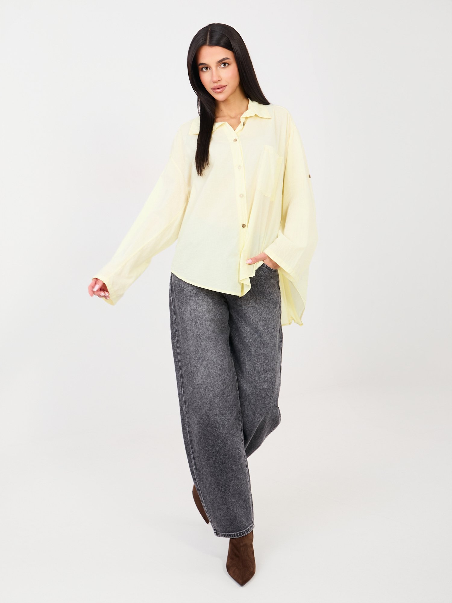 Asimetrinio modelio medvilniniai marškiniai “MELI” šviesi geltona