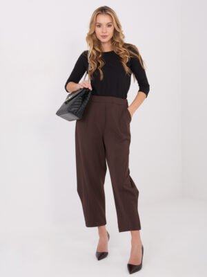 Aukšto liemens 7/8 ilgio laisvo kirpimo kelnės”ALEXA” ruda