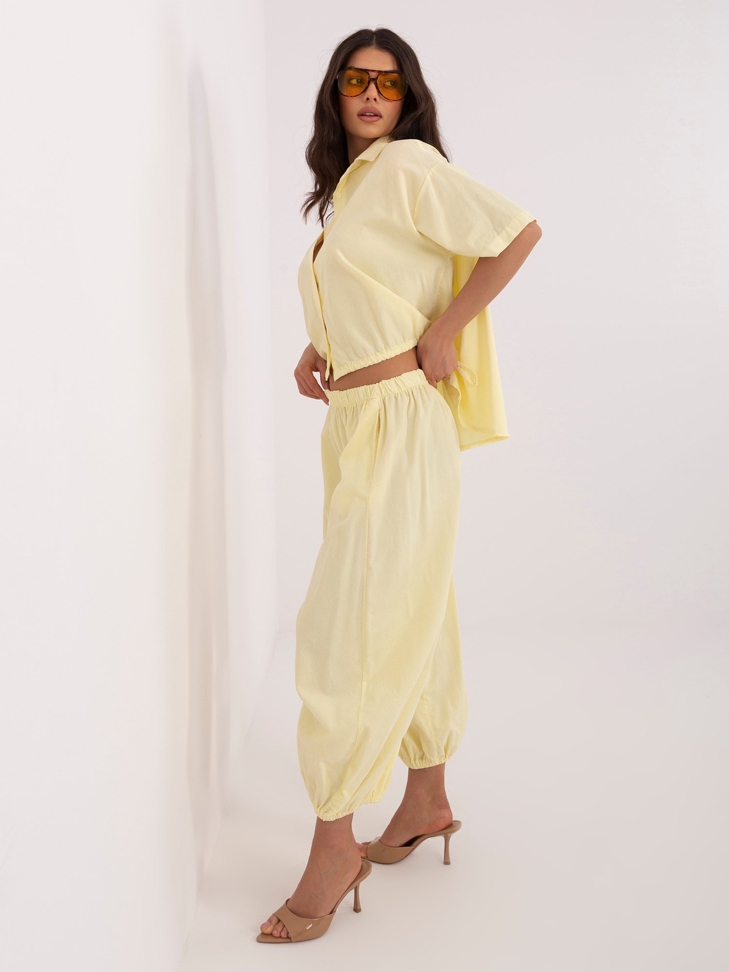 Balloon tipo smulkaus velveto kelnės su elastingu liemeniu “ALLISON” šviesi geltona