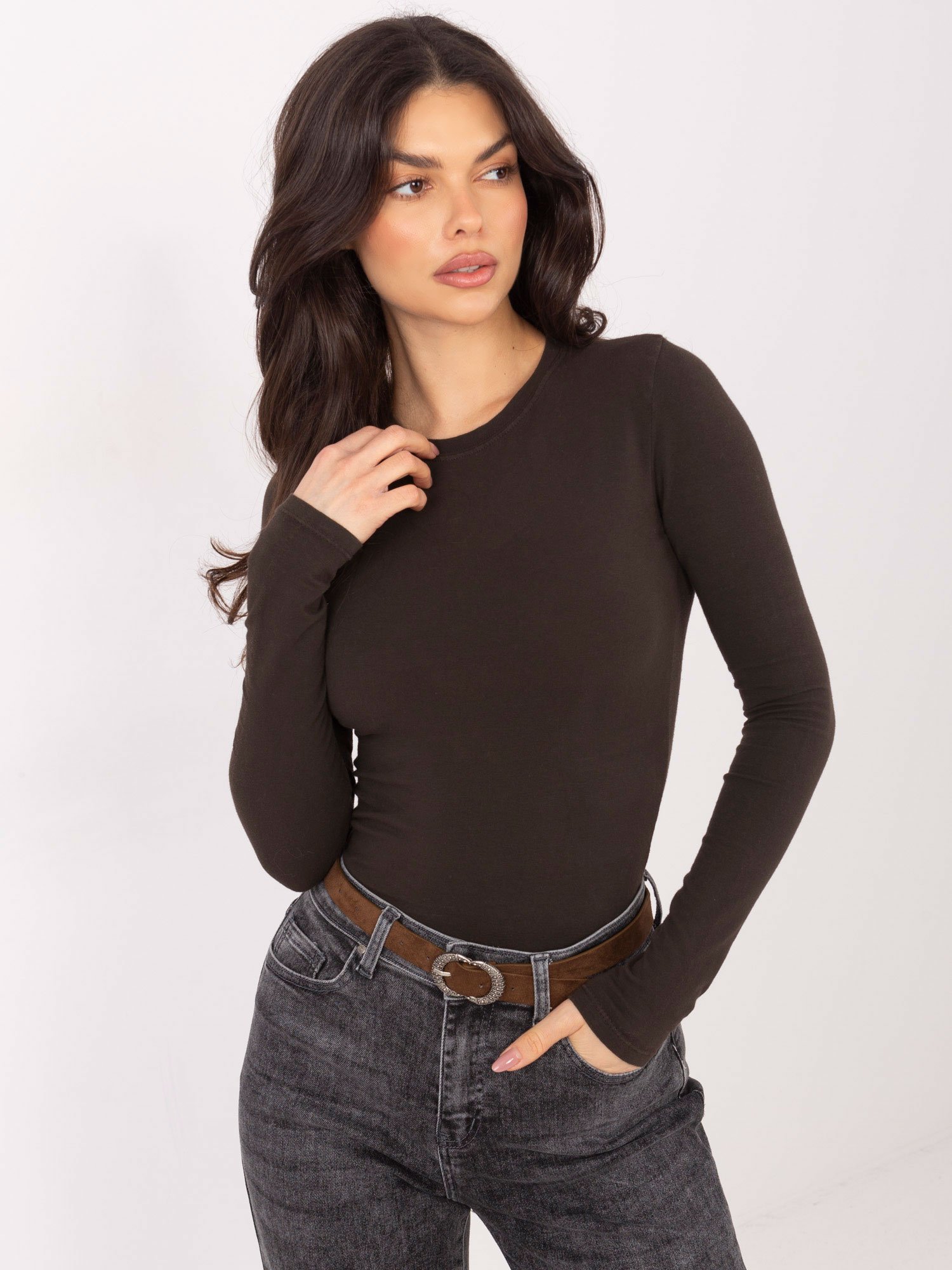 Basic stiliaus palaidinė ilgomis rankovėmis “LILOU” tamsi ruda