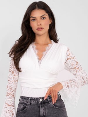 Bodis varpelio formos nėrinių rankovėmis “RENATA” balta