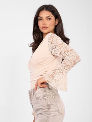Bodis varpelio formos nėrinių rankovėmis “RENATA” smėlio
