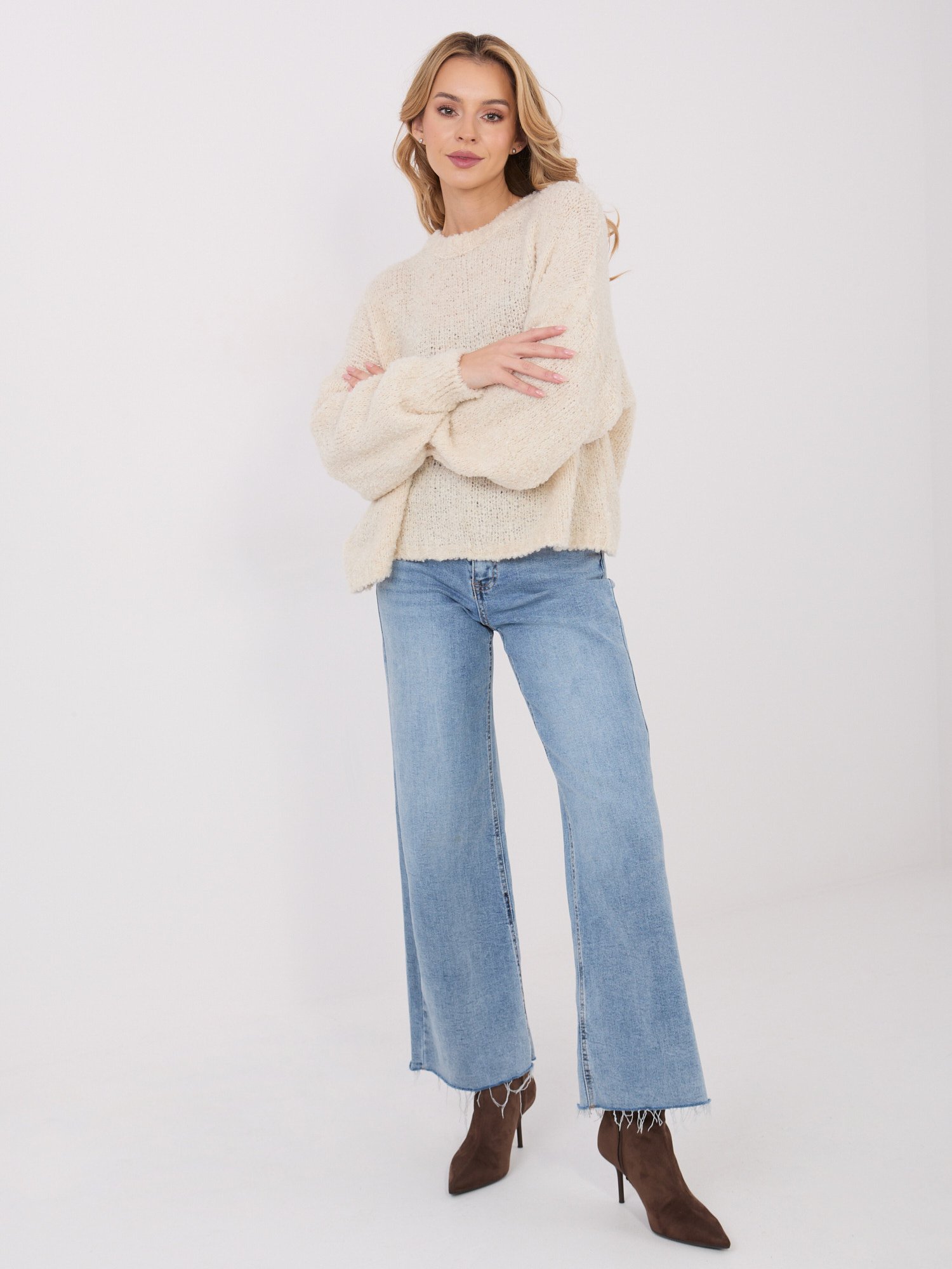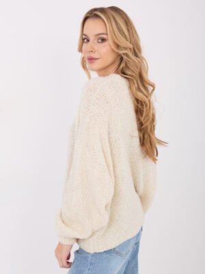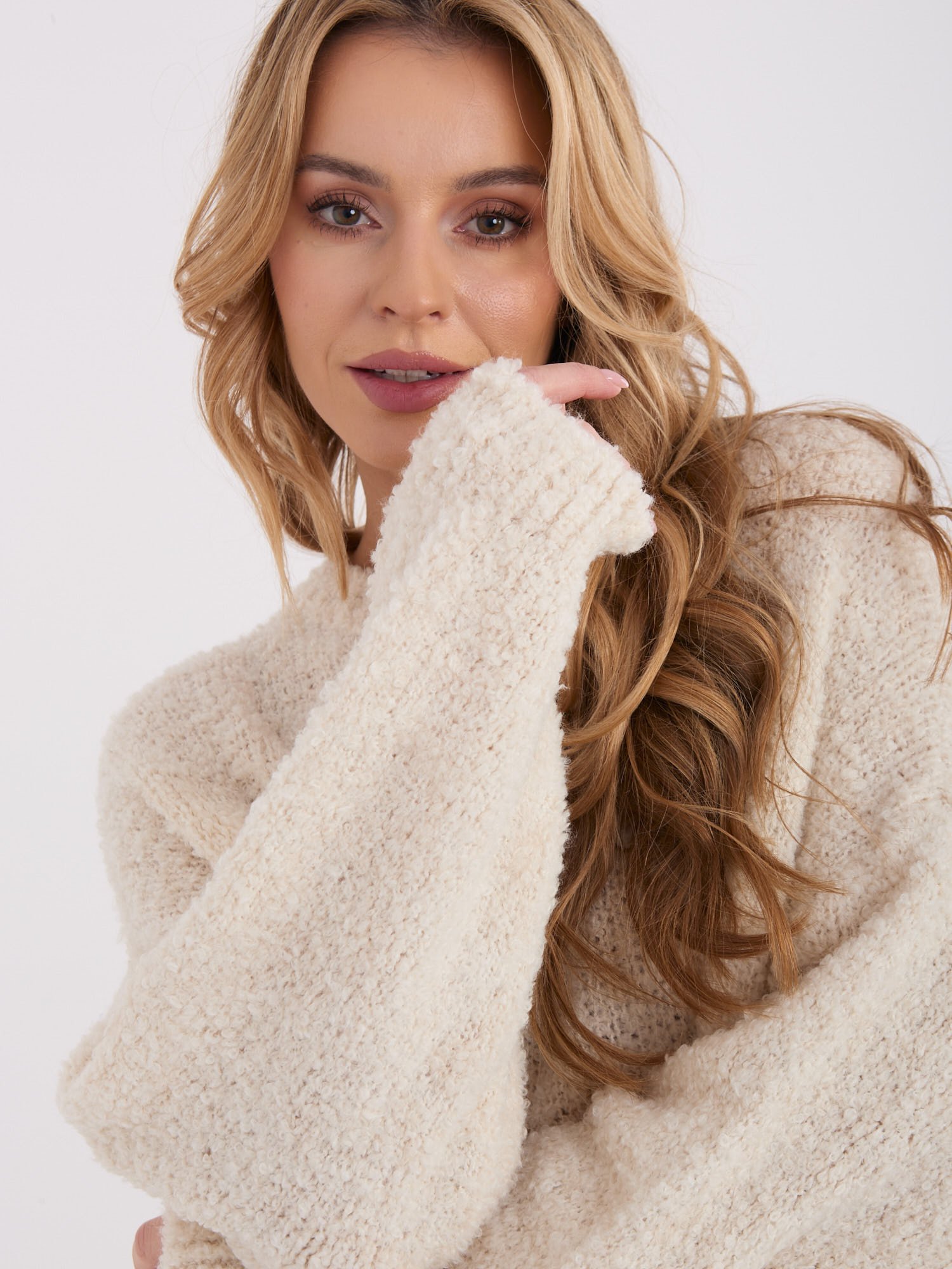 Bouclé mezgimo megztinis su vilna “CAROL” šviesi smėlio