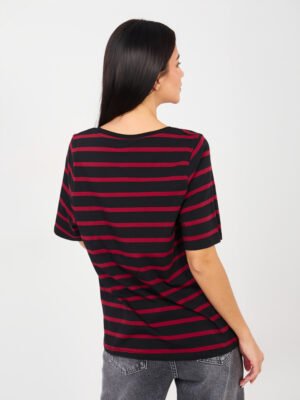 Dryžuoti medvilniniai marškinėliai trumpomis rankovėmis “ZINA” juoda raudona