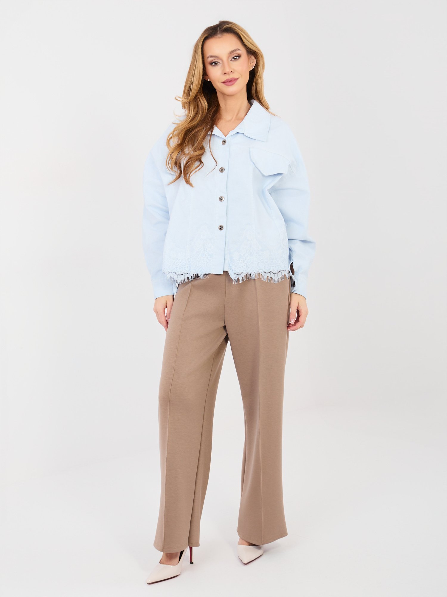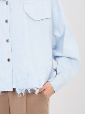 Džinsinis švarkelis su sagomis ir nėrinių apdaila “CORDY” šviesi mėlyna