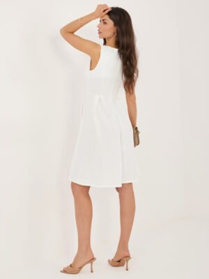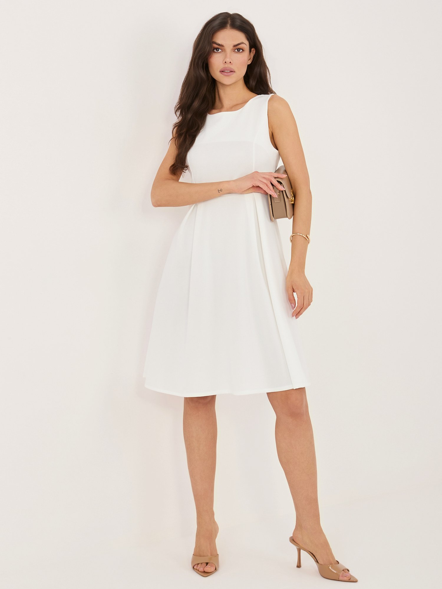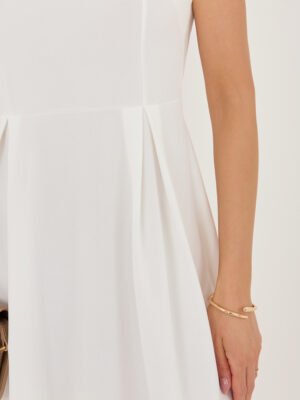 Elegantiška klasikinio silueto platėjanti suknelė be rankovių “KALINA” pieno balta