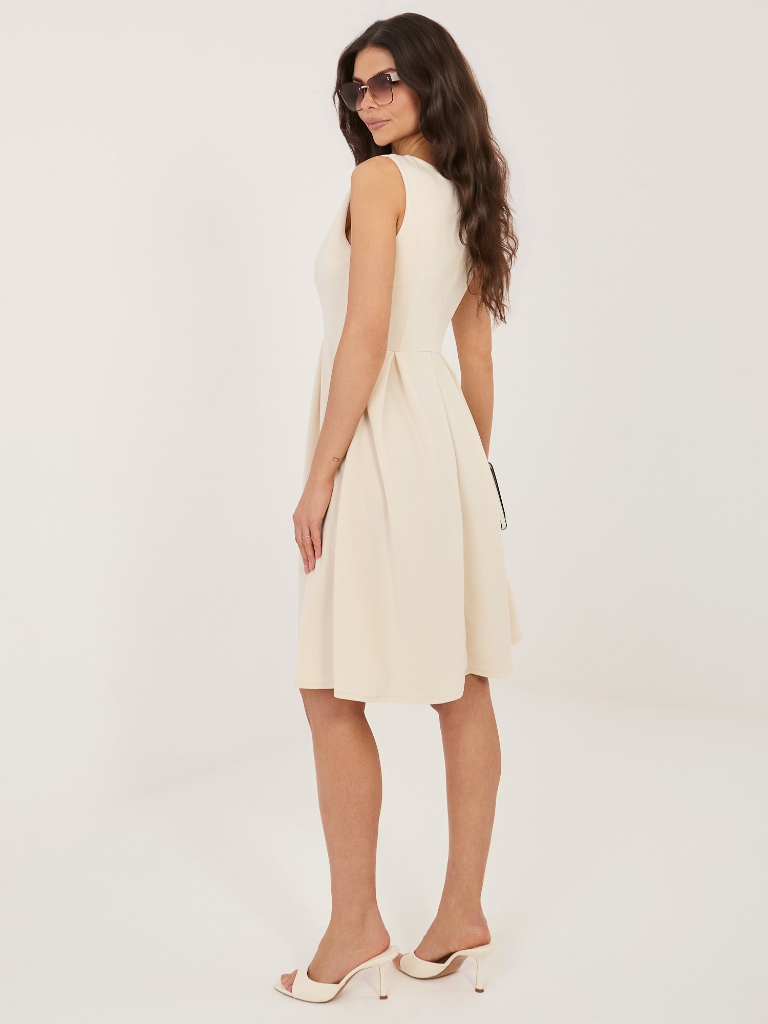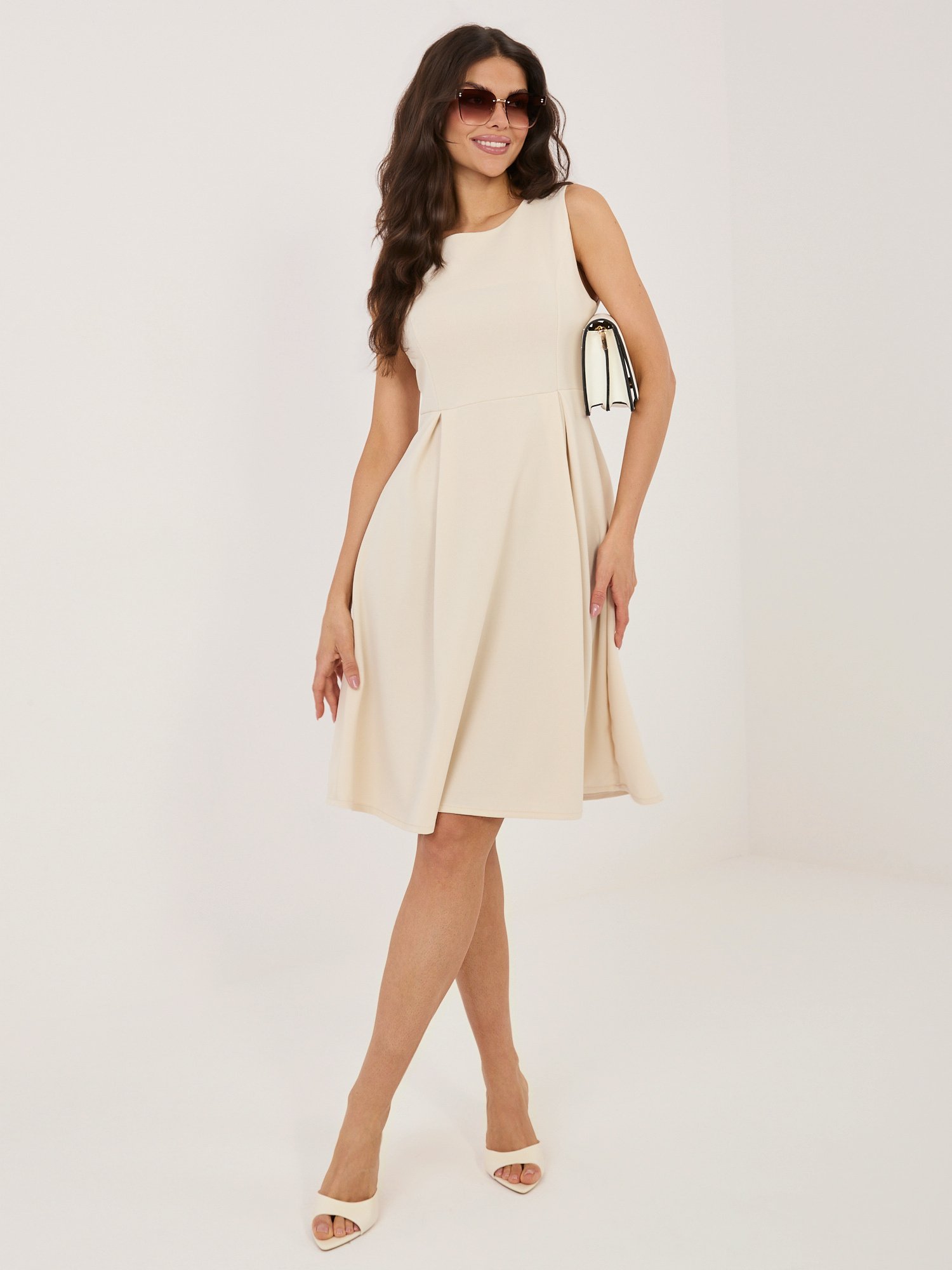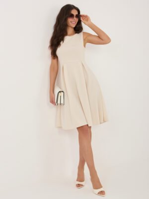 Elegantiška klasikinio silueto platėjanti suknelė be rankovių “KALINA” šviesi smėlio