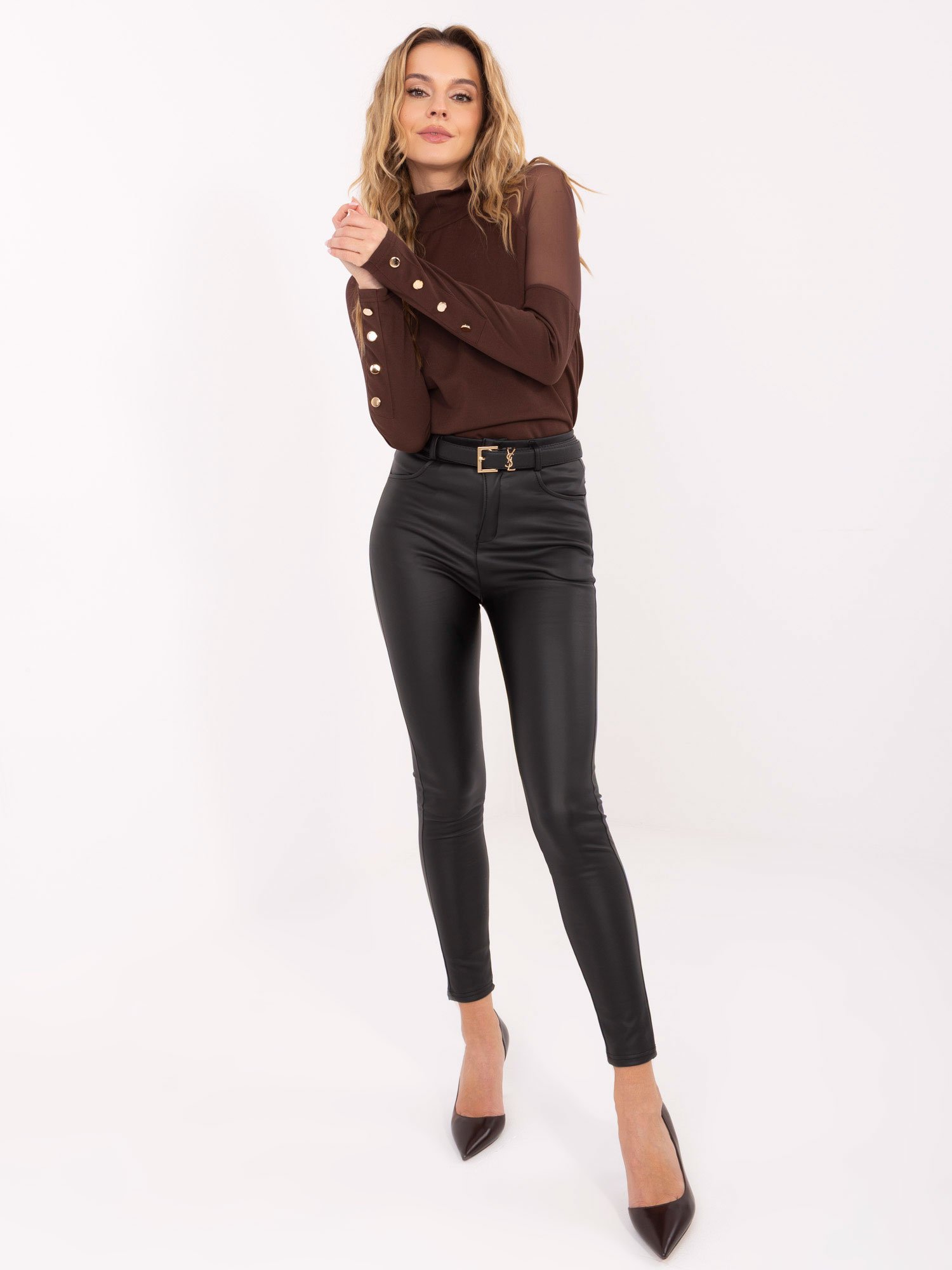 Stilinga ir moteriška palaidinė su subtiliomis permatomo tinklelio detalėmis . Aukštas kaklas suteikia elegancijos, o dekoratyvinės sagos ant rankogalių papildo įvaizdį išskirtinėmis, prabangiai atrodančiomis detalėmis. Švelnus, elastingas audinys užtikrina komfortą ir stilingą išvaizdą kiekvienai progai. Puikiai dera su klasikinėmis kelnėmis ar odos imitacijos sijonu.