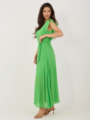 Elegantiška plisuota maxi suknelė su V formos iškirpte “AMELISSE” šviesi žalia