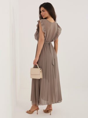 Elegantiška plisuota maxi suknelė su V formos iškirpte “AMELISSE” tamsi smėlio