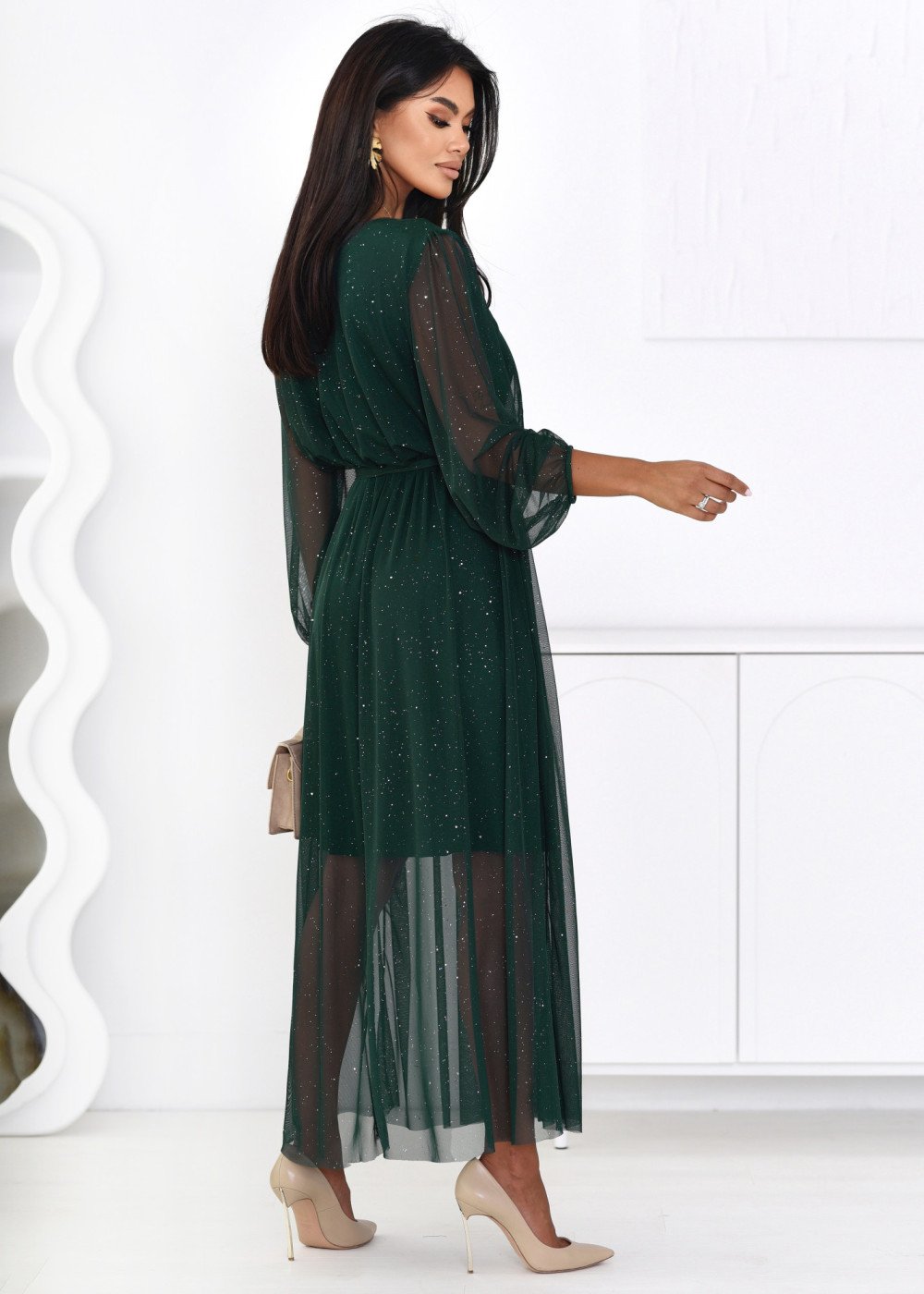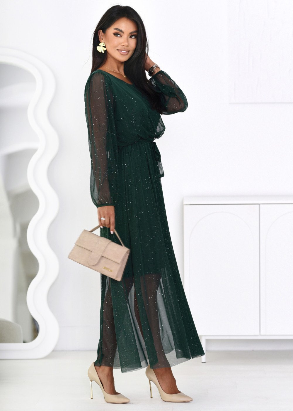 Modelis dėvi VIENO DYDŽIO (one size) suknelę.