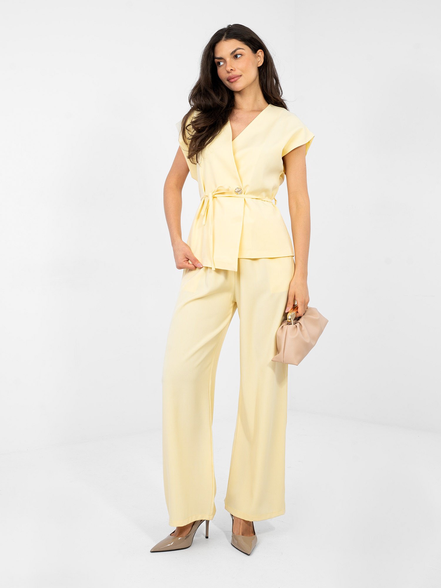 Modelis dėvi VIENO DYDŽIO (one size) laisvalaikio komplektą.