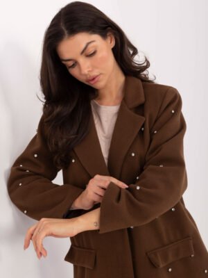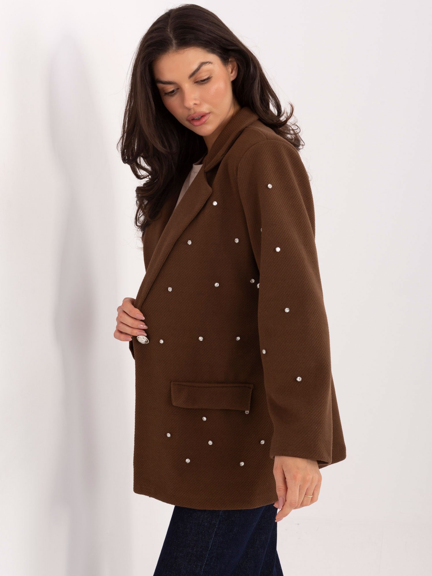 Elegantiškas švarkas dekoruotas cirkoniais “SATYN” ruda