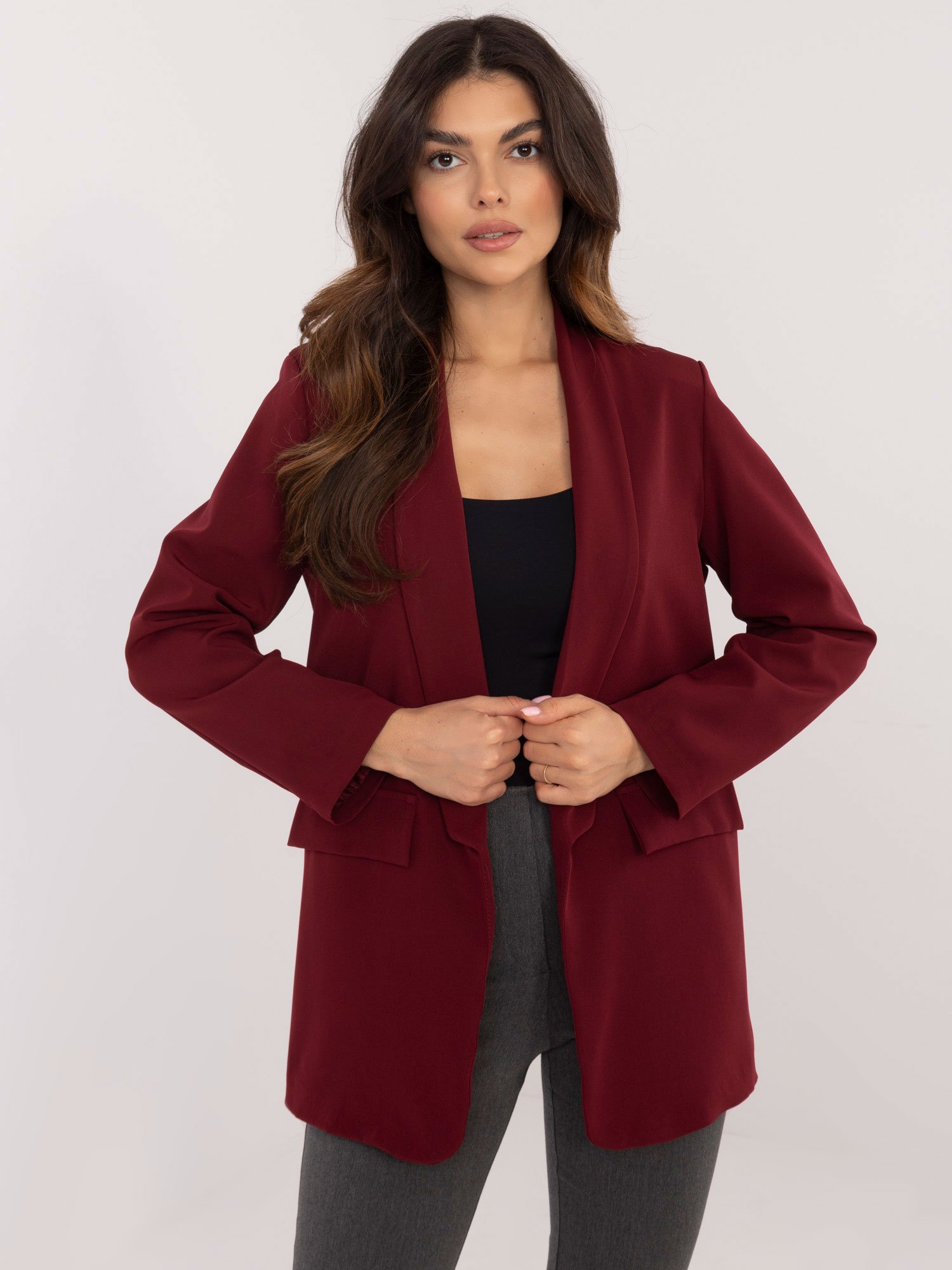 Modelis dėvi VIENO DYDŽIO (one size) švarką.