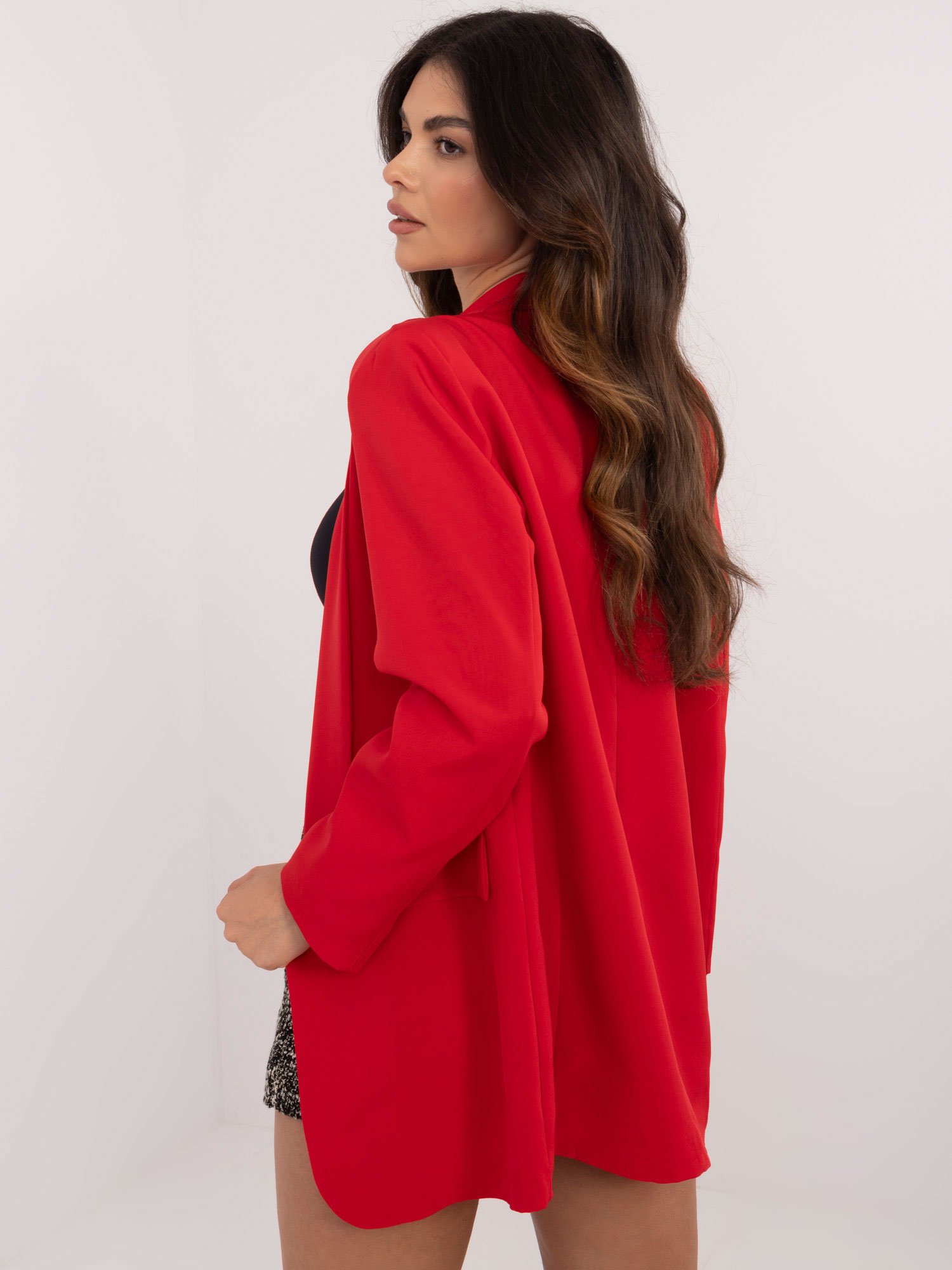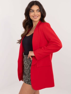 Elegantiškas tiesaus kirpimo švarkas be užsegimo “MARIAM” raudona