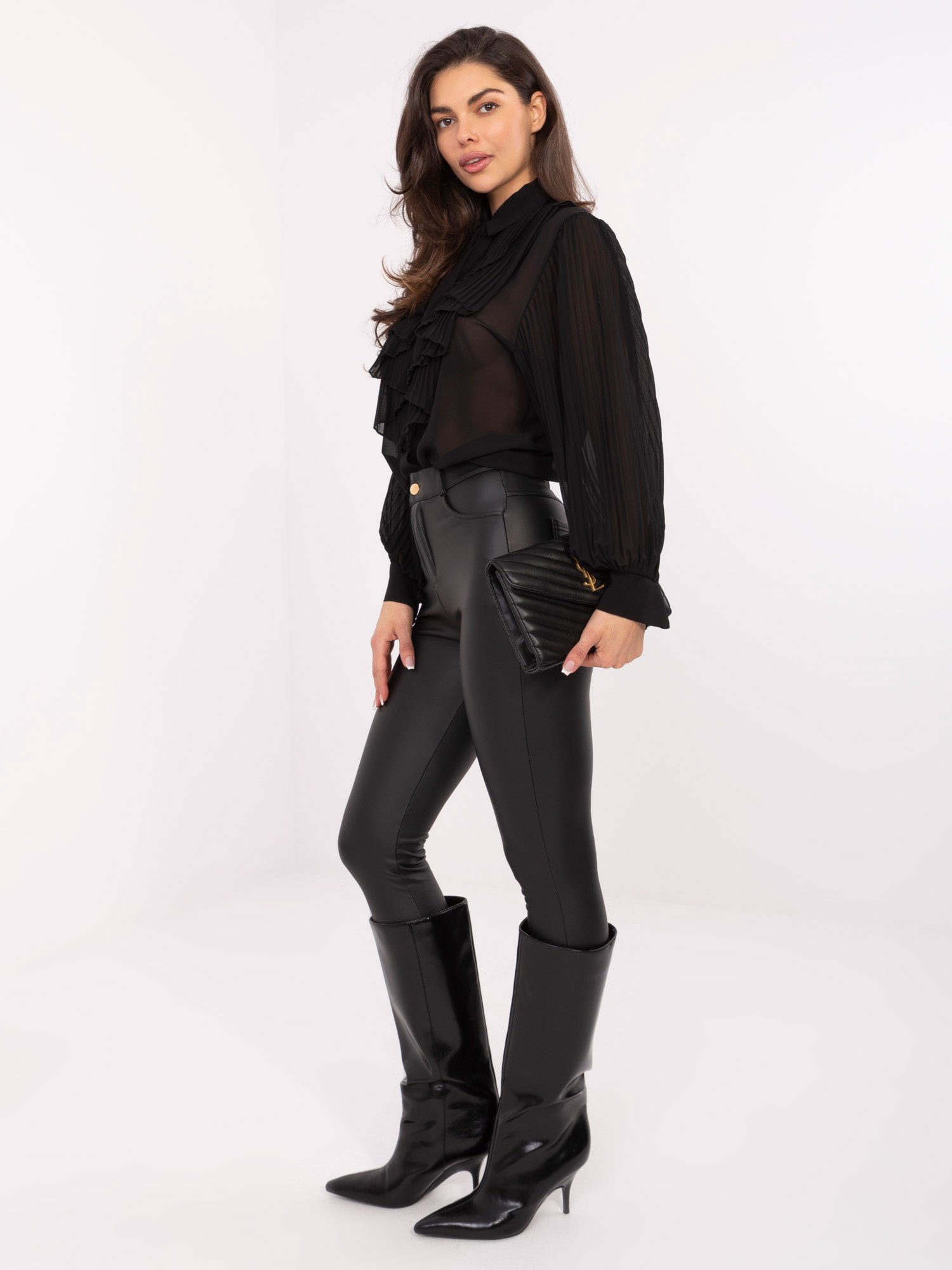 Modelis nuotraukoje su VIENO DYDŽIO marškiniais. Modelio išmatavimai: ūgis 173 cm, krūtinė 85 cm, liemuo 62 cm, klubai 95 cm.
