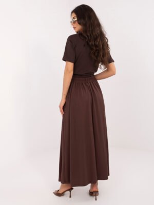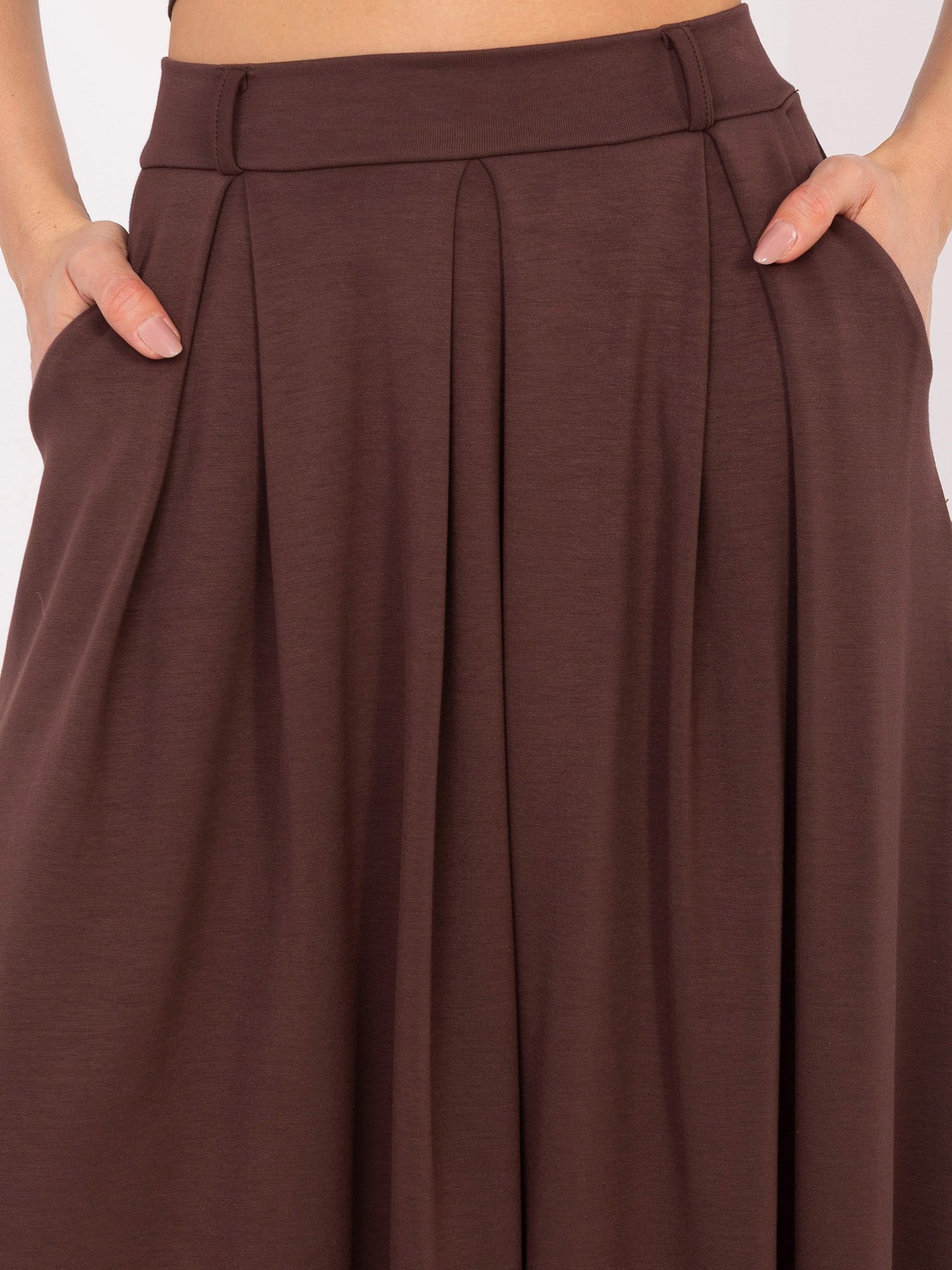 Ilgas sijonas su klostėmis ir aukštu liemeniu “BRITANY” tamsi ruda