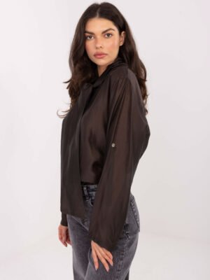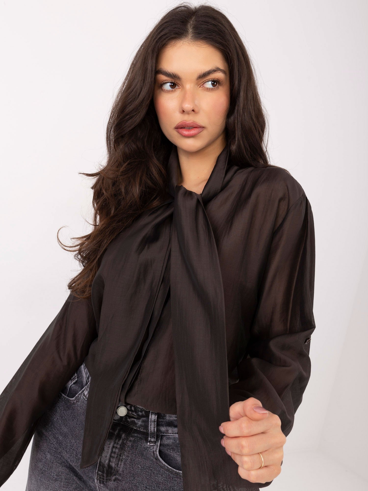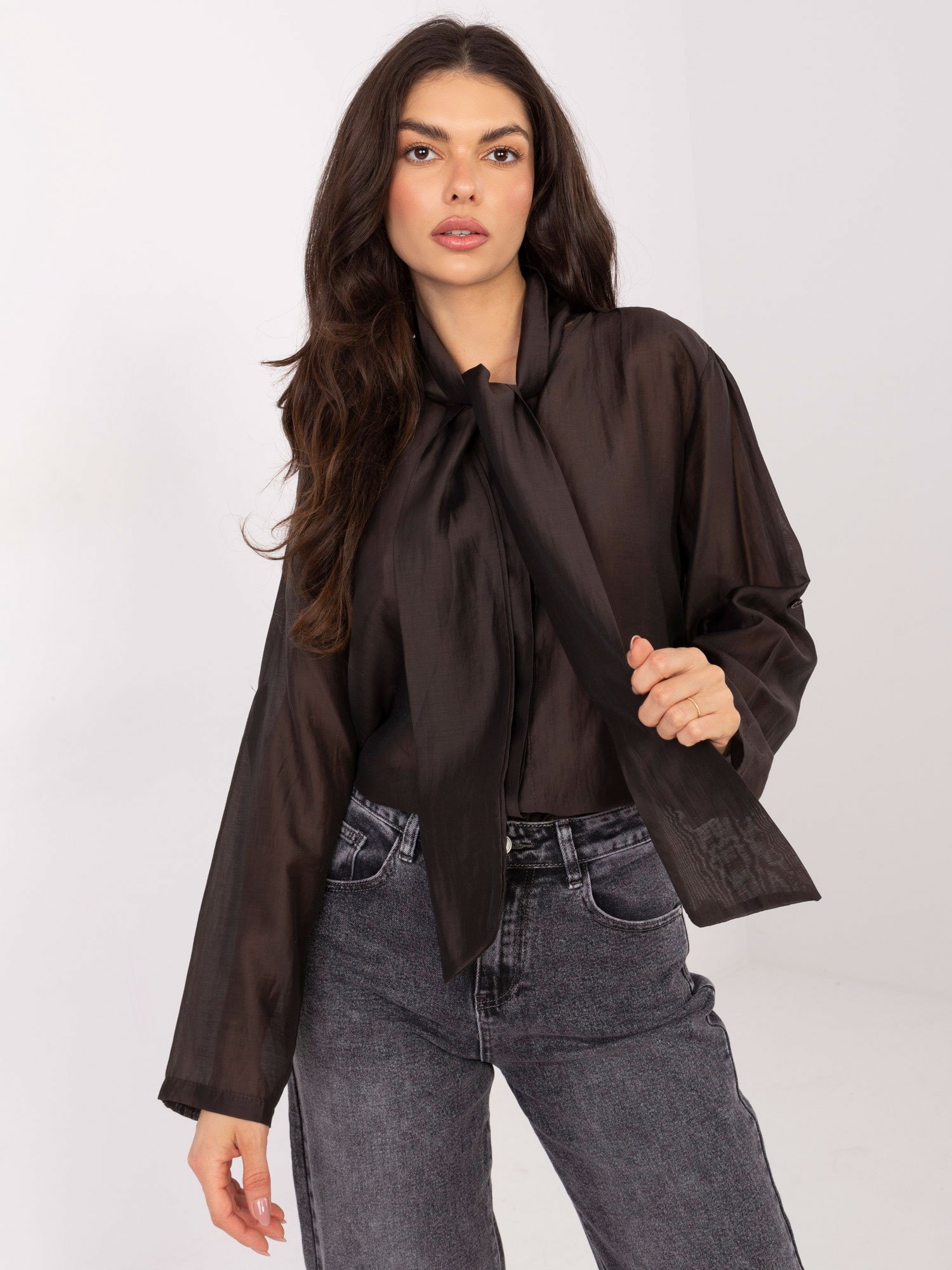 Iš dalies permatomi marškiniai su kaspinu “ROUGE” ruda