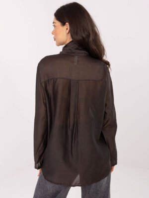 Iš dalies permatomi marškiniai su kaspinu pasižymi itin lengvu, pusiau permatomu audiniu, kuris suteikia subtilios elegancijos ir lengvumo. Visiems sezonams tinkantis modelis. Marškiniai laisvo, oversize stiliaus, tad puikiai tinka įvairiai figūrai, mažesniam dydžiui laisvesnis modelis.