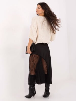 Išraiškingas sijonas su permatomų nėrinių intarpu “PAULA” juoda