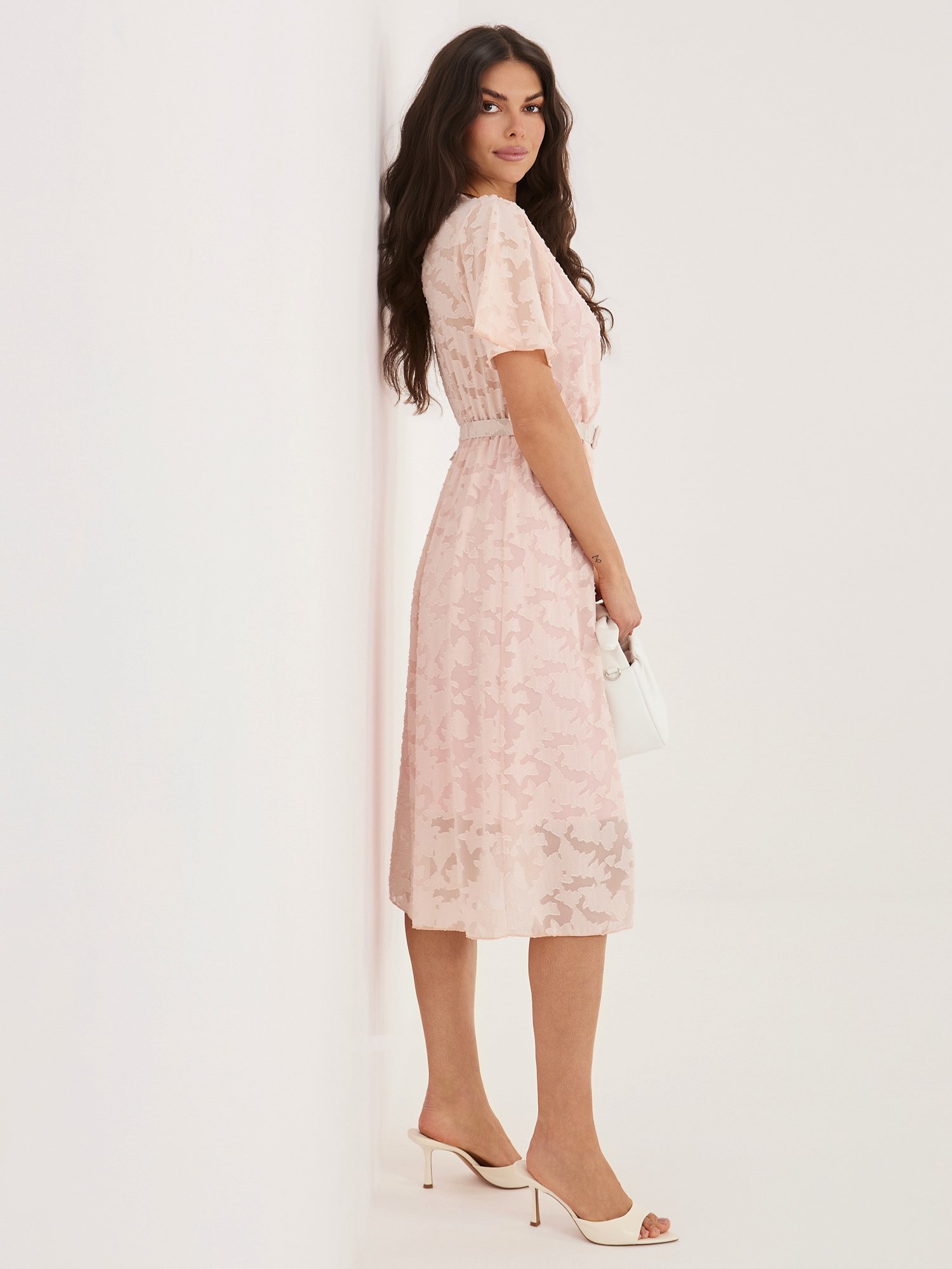 Mini suknelė su išraiškinga apykakle ir pūstomis rankovėmis "ARABELLA" šviesi rožinė - S/M/L