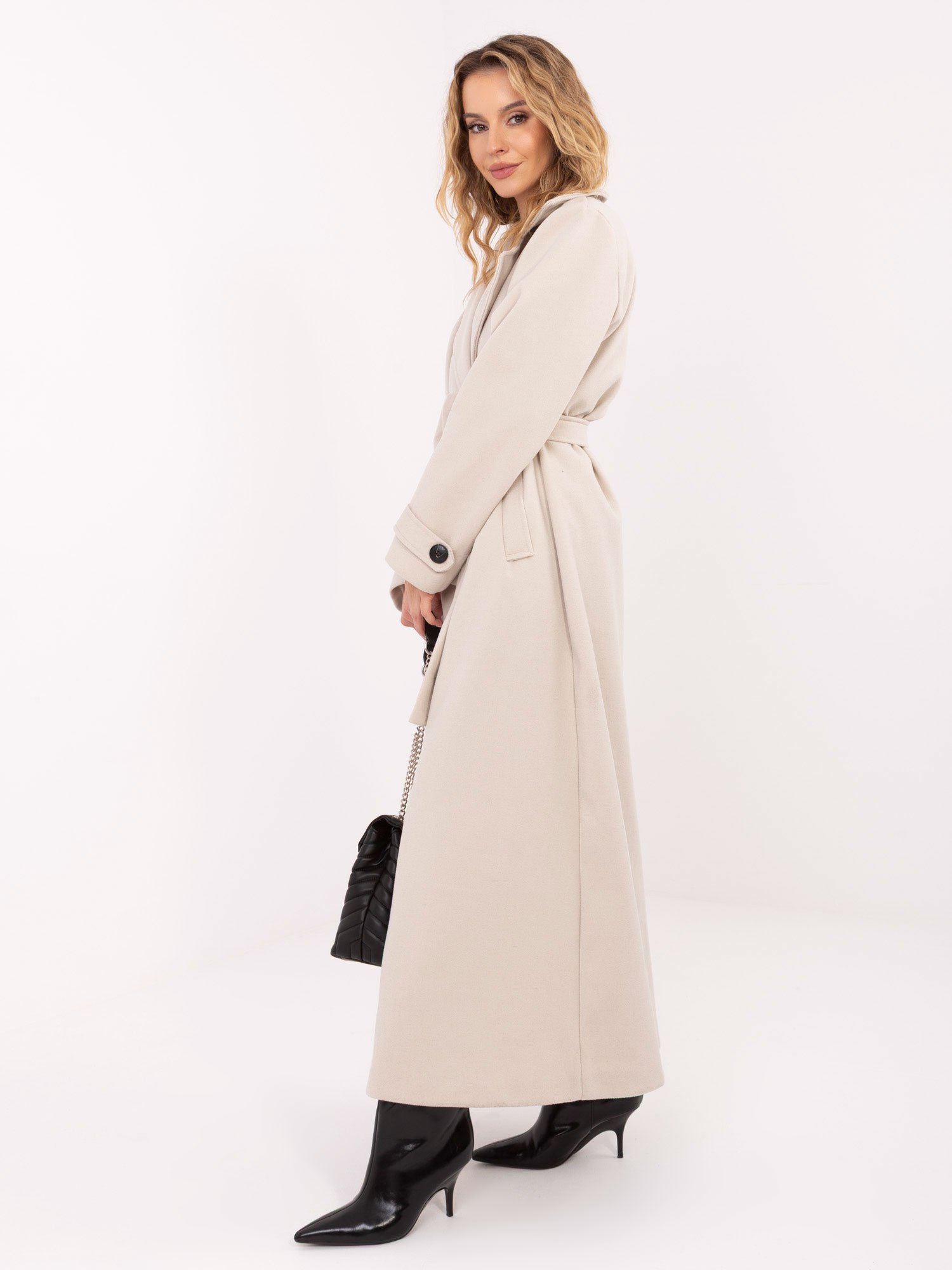 Klasikinis ilgas paltas su dvieiliu užsegimu “SELIA” šviesi smėlio