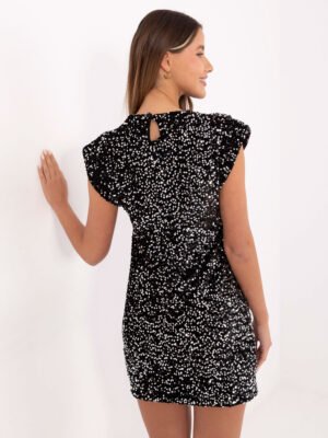 Kokteilinė puošni blizgi suknelė “LIZA” juoda sidabrinė
