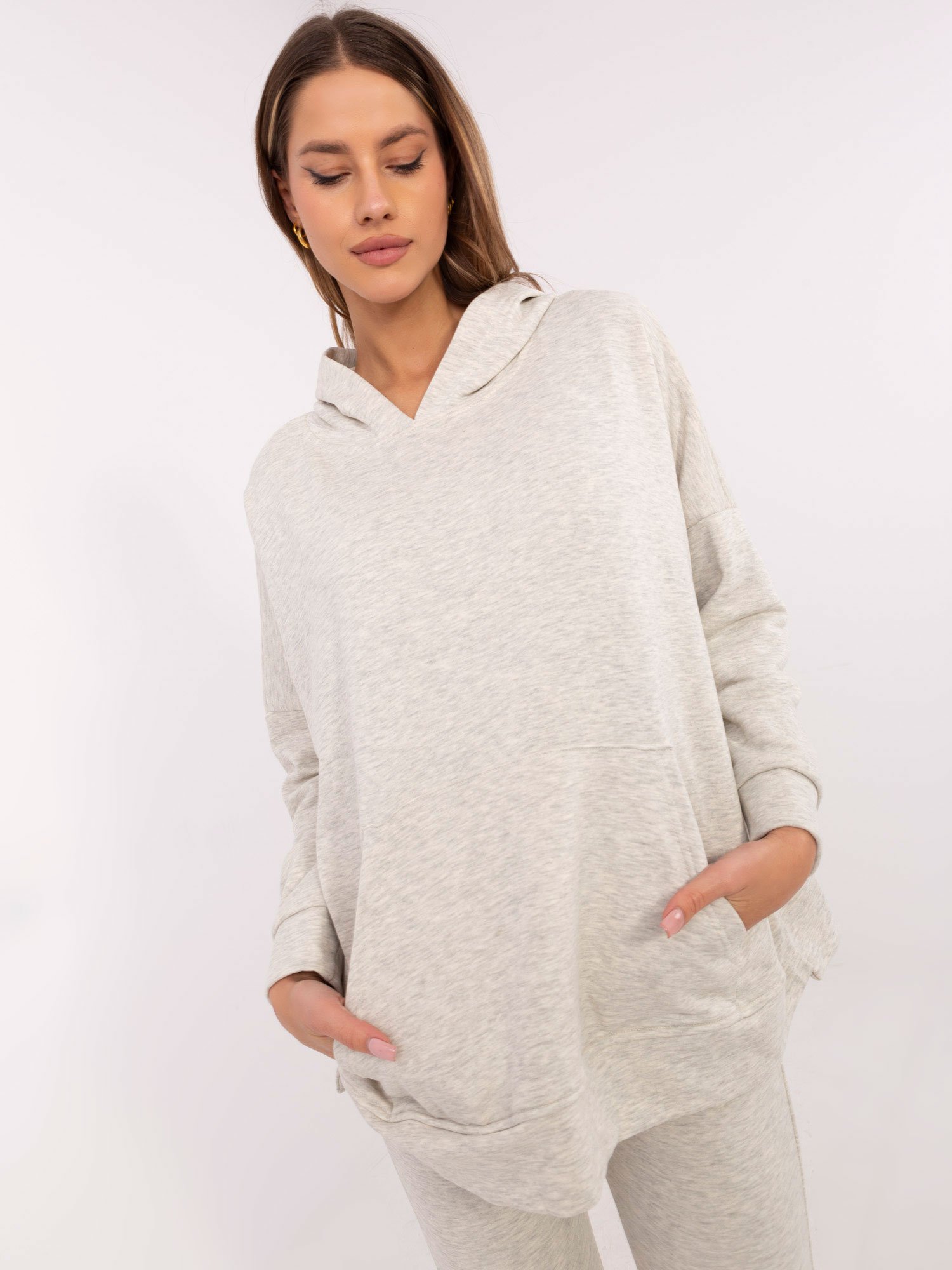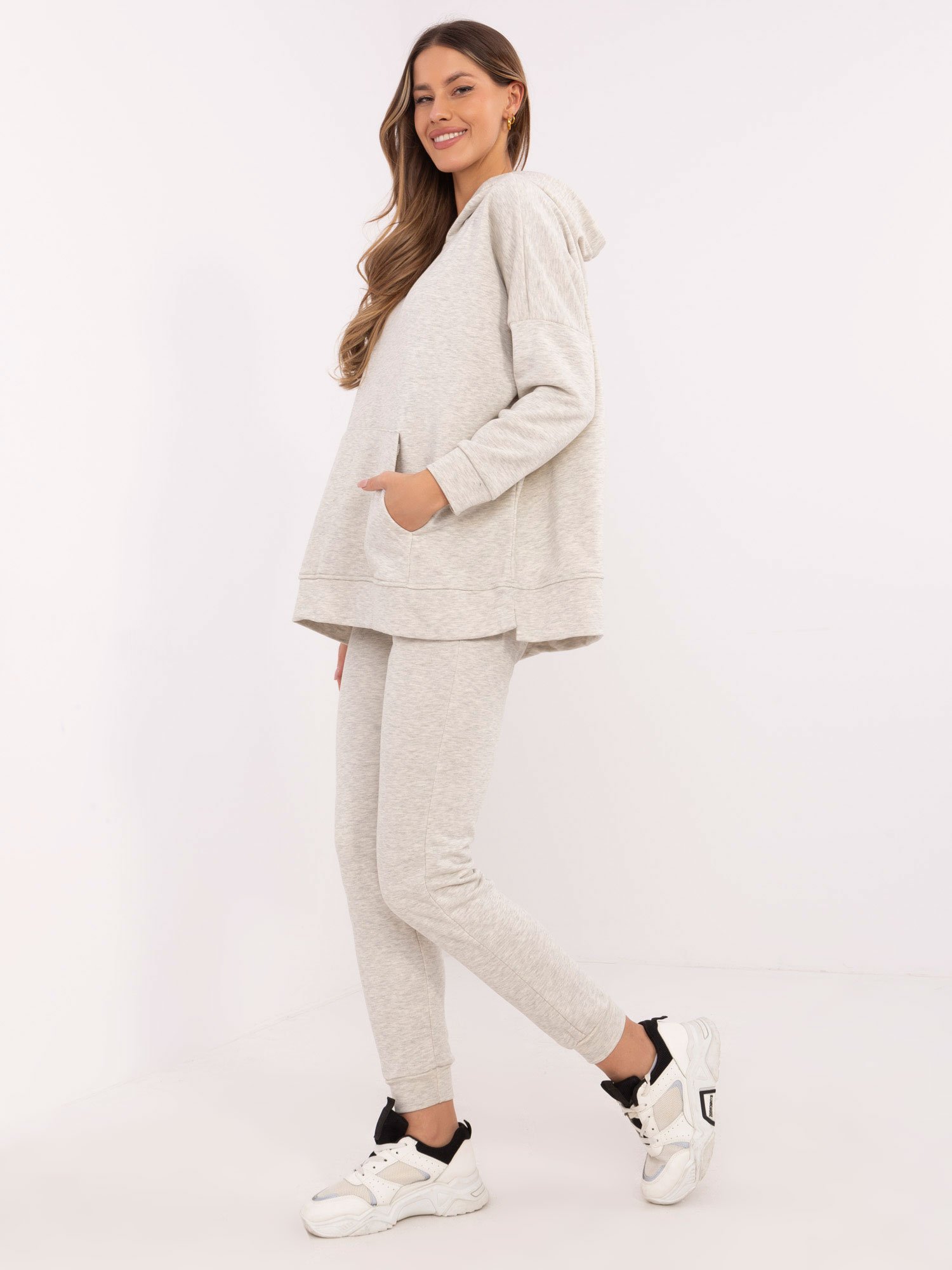Modelis dėvi VIENO DYDŽIO (one size) laisvalaikio komplektą.