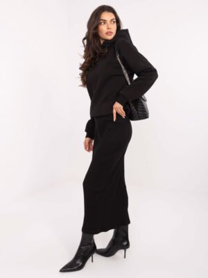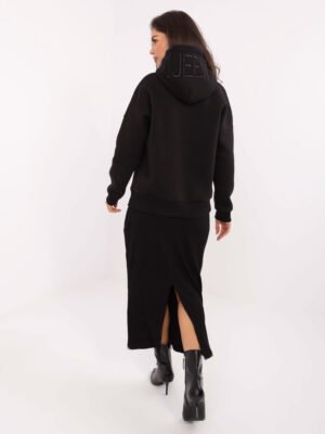 Modelis dėvi VIENO DYDŽIO džemperį.