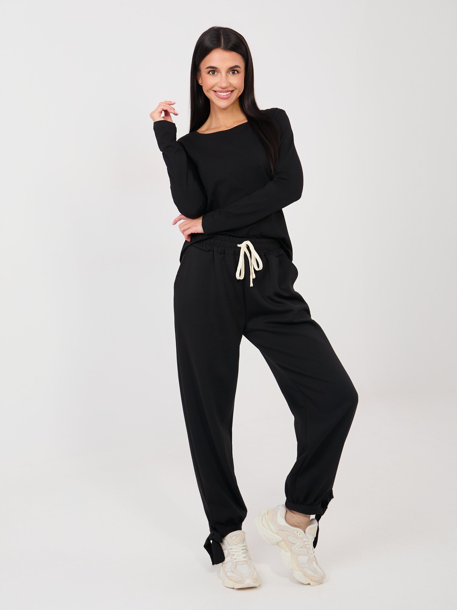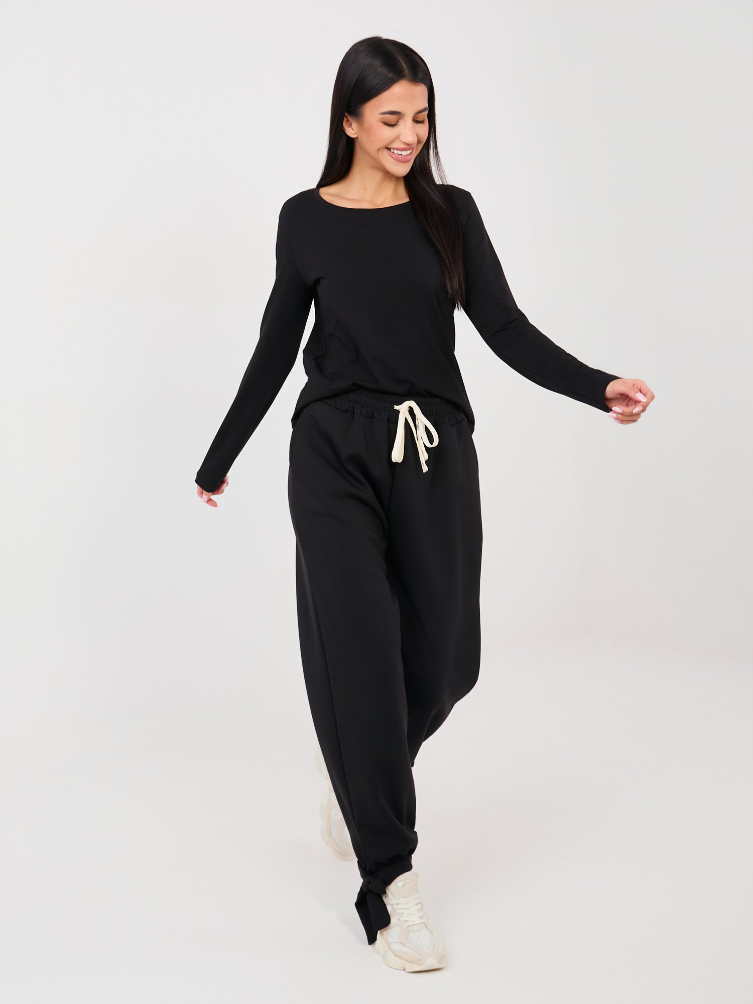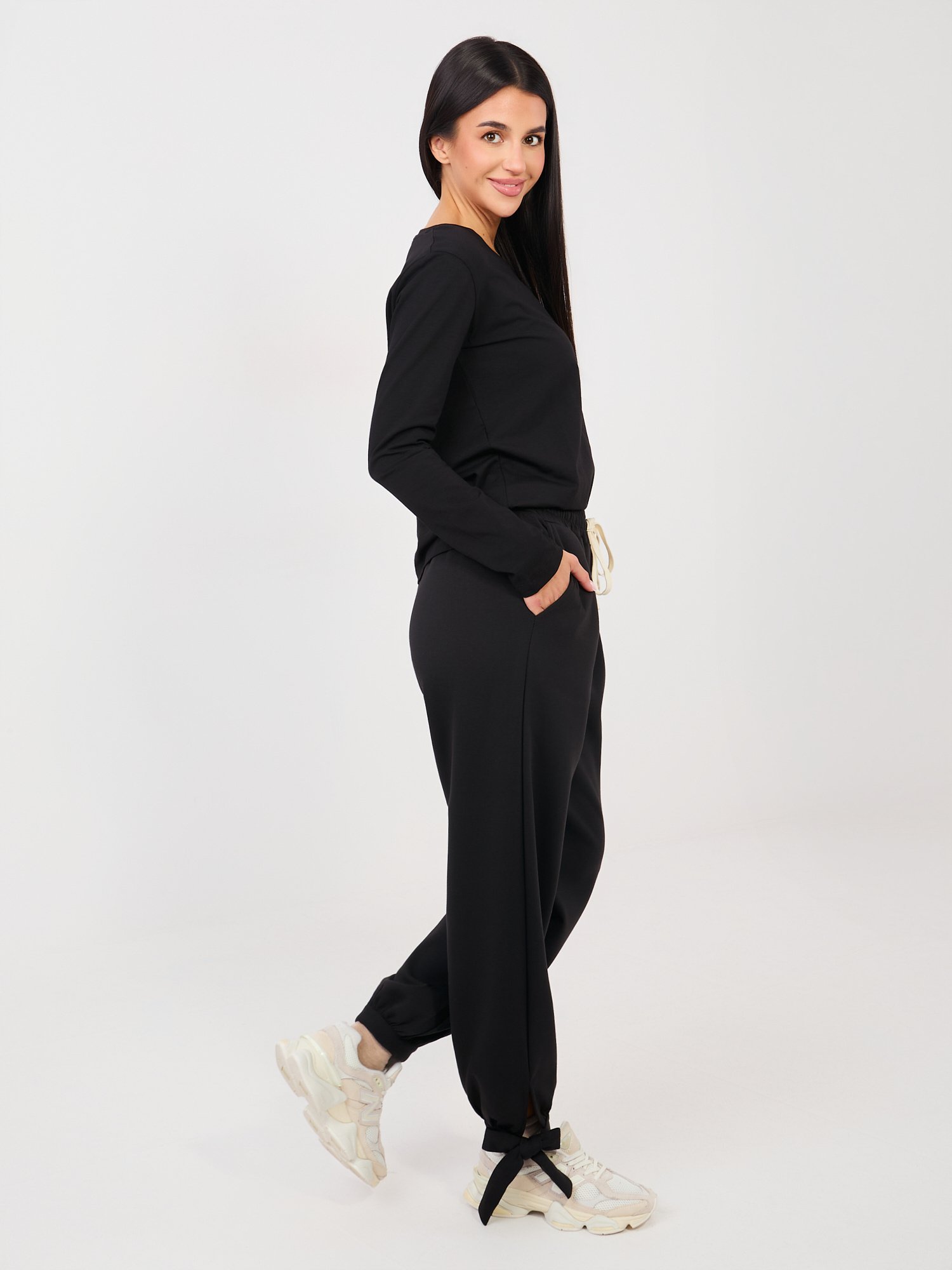 Laisvalaikio kelnės su raišteliais reguliuojamais galais “POLLA” juoda