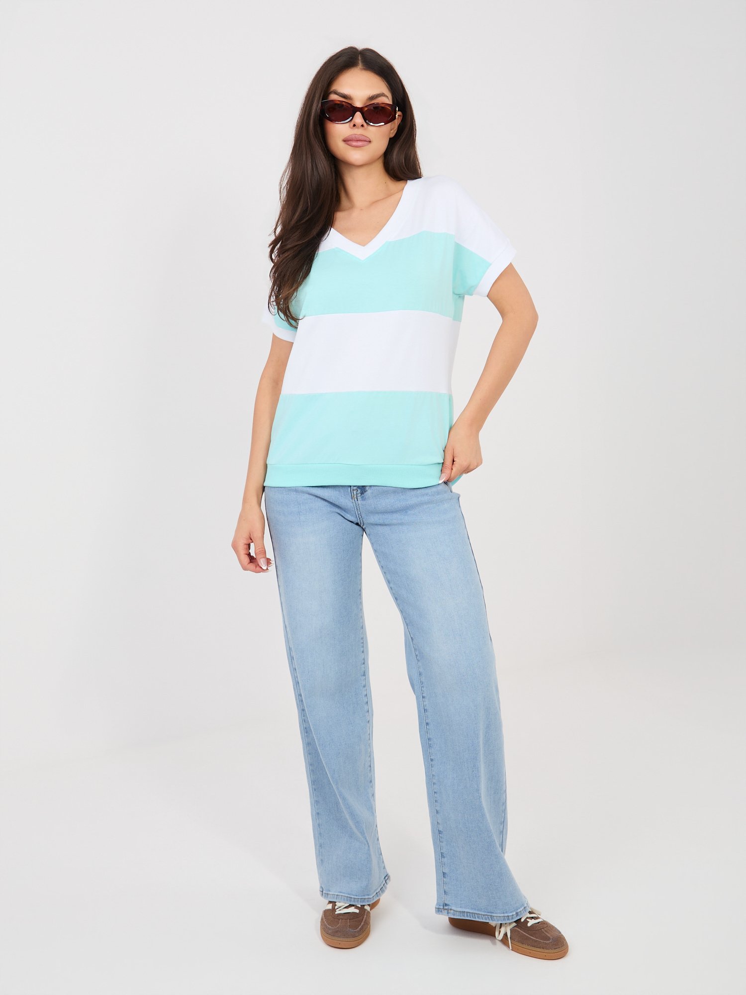 Lengva medvilninė palaidinė, išsiskirianti plačiomis horizontaliomis juostomis ir V formos iškirpte. Kontrastingos spalvų juostos suteikia modeliui gaivumo ir modernumo, todėl palaidinė puikiai tinka kasdieniams deriniams. Modelis  trumpomis rankovėmis  idealiai tinka šiltesniam sezonui ir lengvai derinamas su džinsais, šortais ar laisvalaikio kelnėmis.