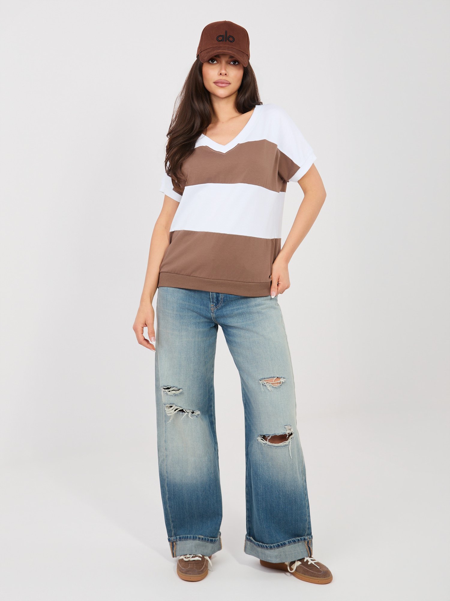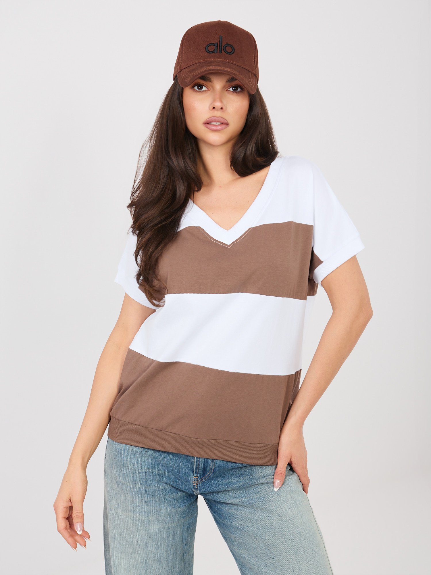 Lengva medvilninė palaidinė, išsiskirianti plačiomis horizontaliomis juostomis ir V formos iškirpte. Kontrastingos spalvų juostos suteikia modeliui gaivumo ir modernumo, todėl palaidinė puikiai tinka kasdieniams deriniams. Modelis  trumpomis rankovėmis  idealiai tinka šiltesniam sezonui ir lengvai derinamas su džinsais, šortais ar laisvalaikio kelnėmis.