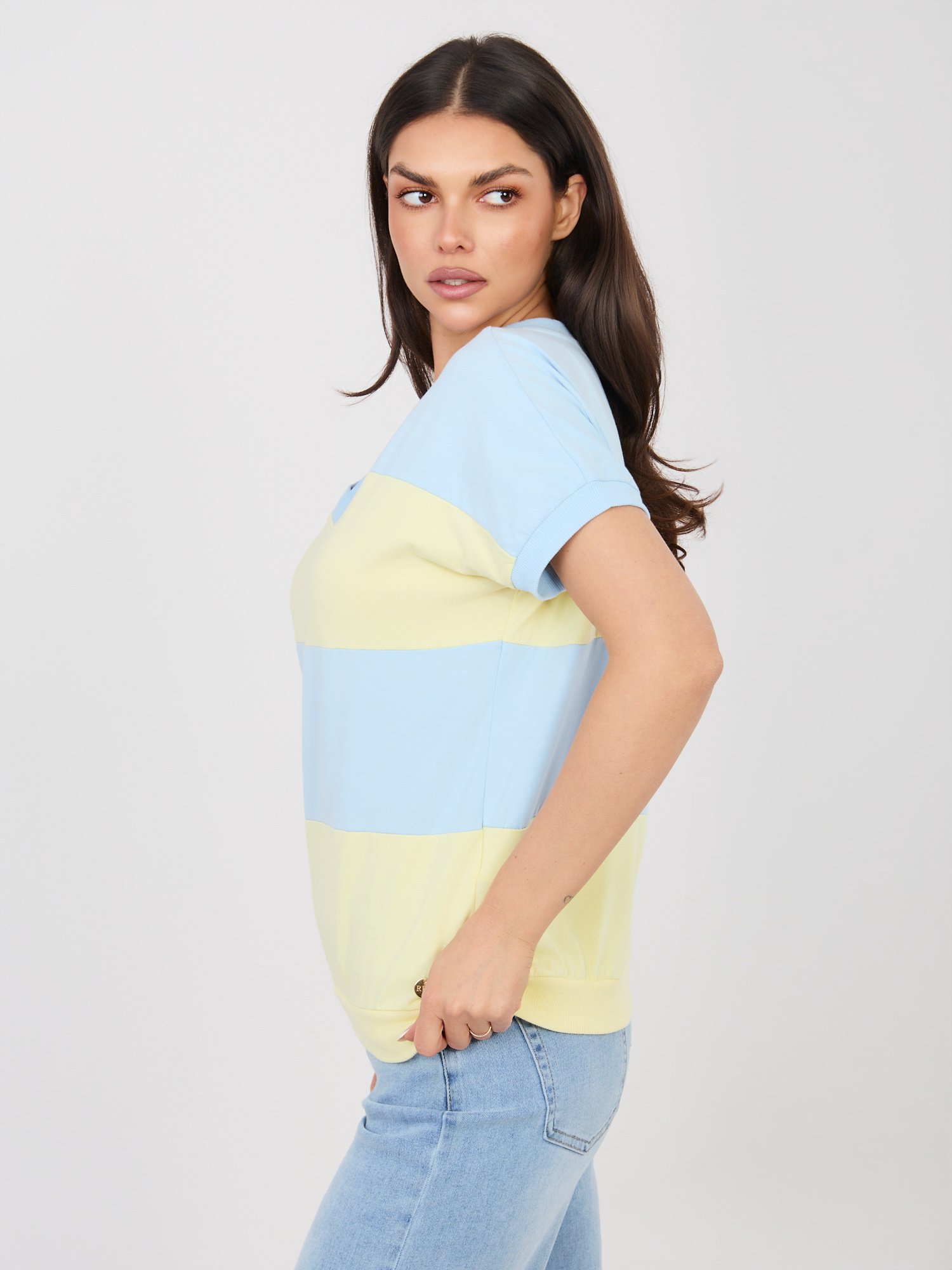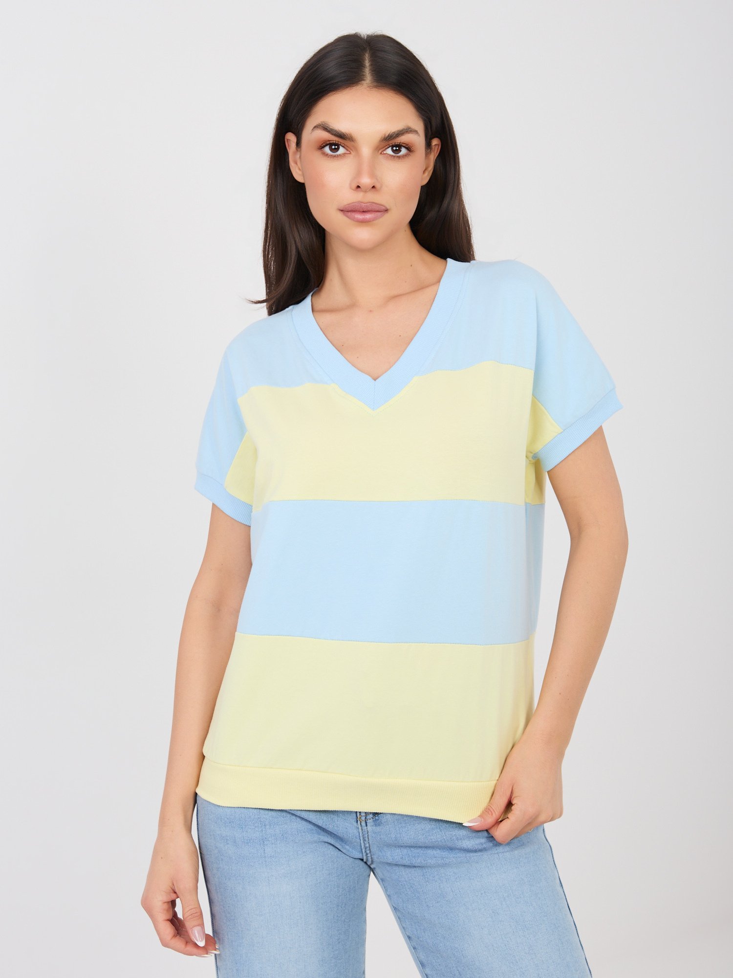Lengva medvilninė palaidinė, išsiskirianti plačiomis horizontaliomis juostomis ir V formos iškirpte. Kontrastingos spalvų juostos suteikia modeliui gaivumo ir modernumo, todėl palaidinė puikiai tinka kasdieniams deriniams. Modelis  trumpomis rankovėmis  idealiai tinka šiltesniam sezonui ir lengvai derinamas su džinsais, šortais ar laisvalaikio kelnėmis.