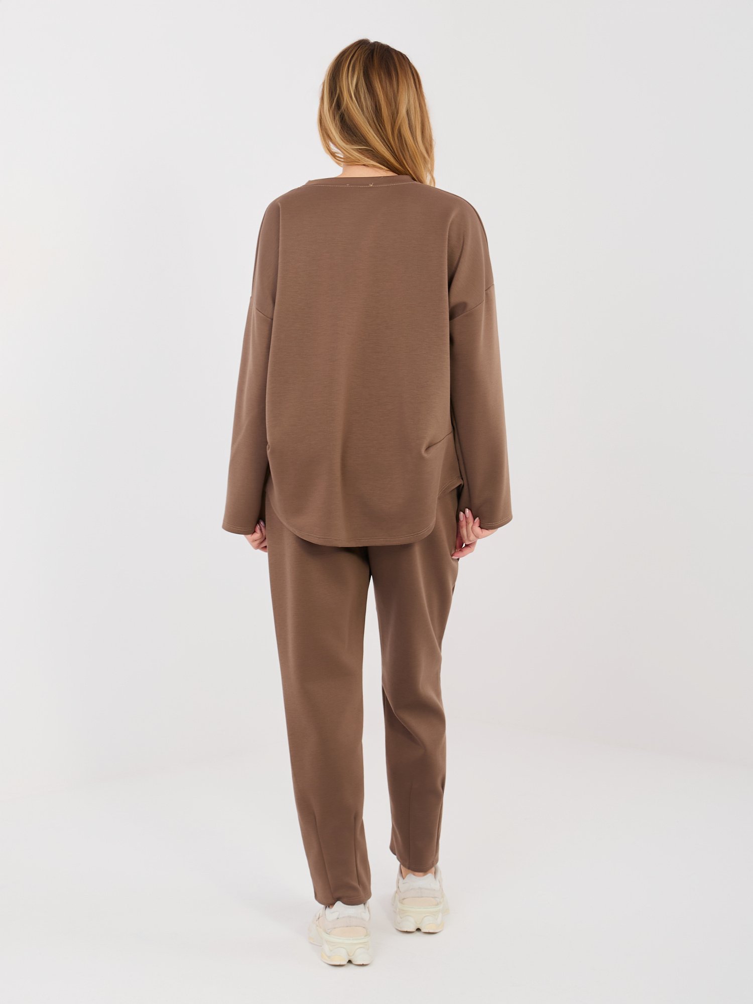Laisvo silueto džemperio ir kelnių komplektas “CORA” ruda