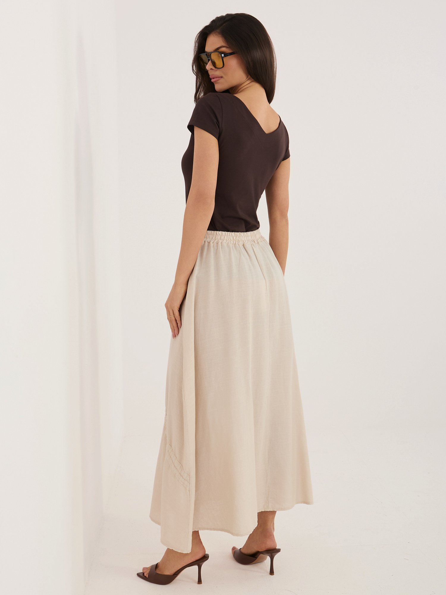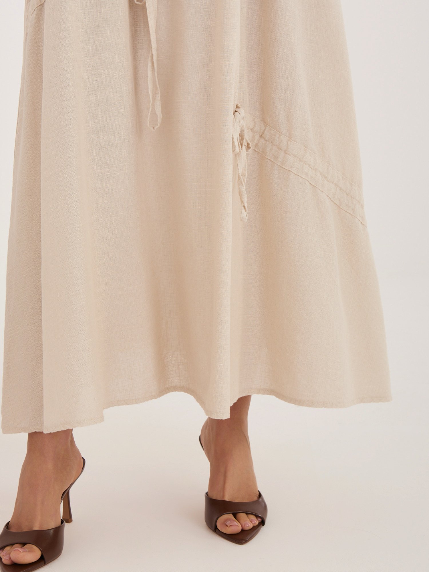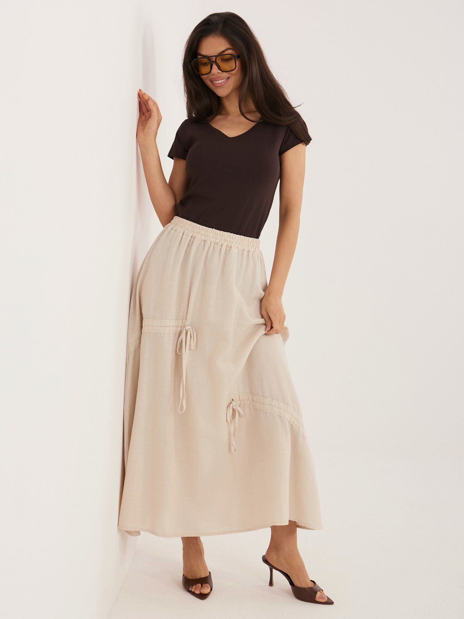 Lengvai krintantis ilgas sijonas su dekoratyviais raišteliais “NOELLY” smėlio