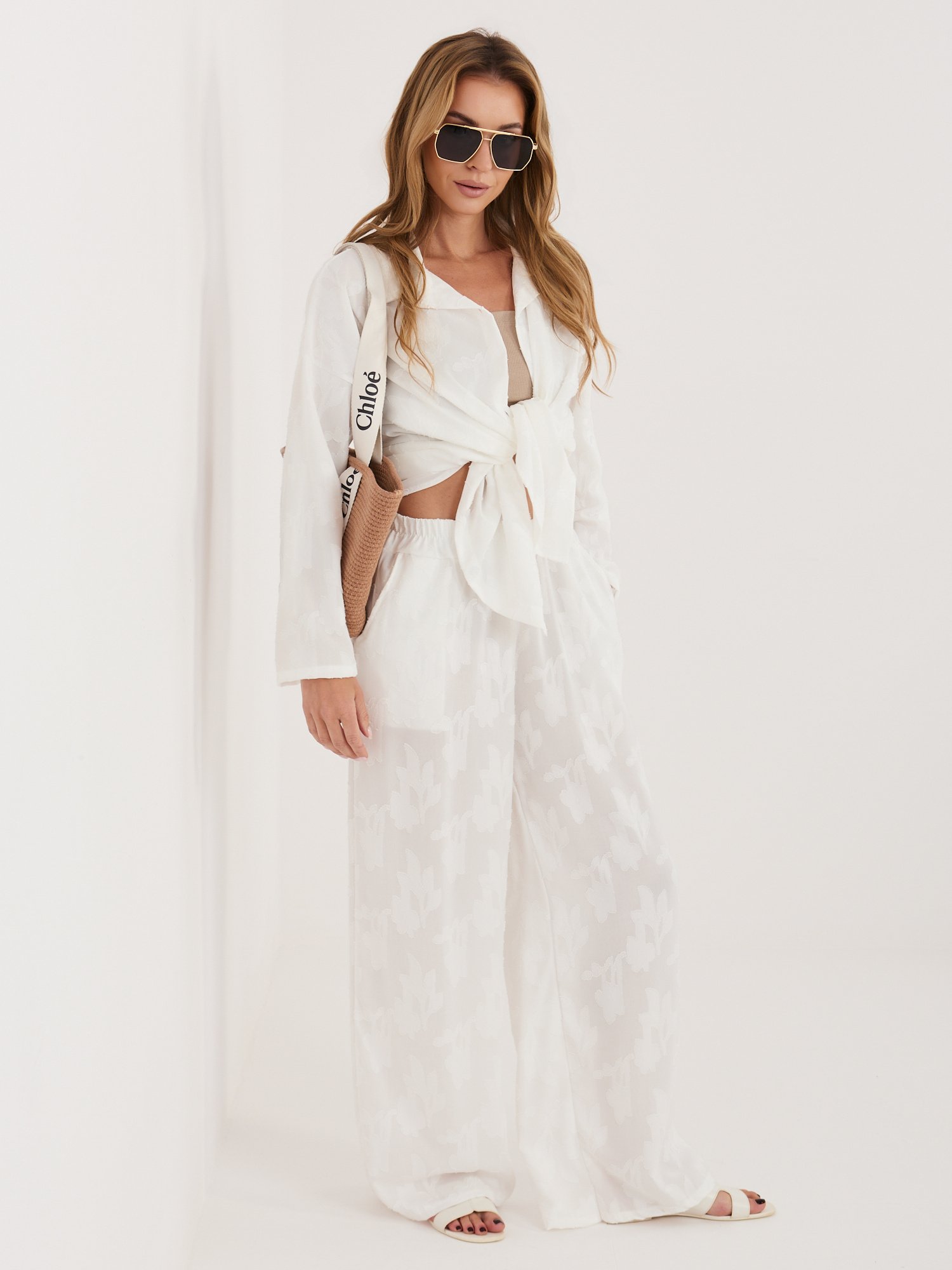Lengvas marškinių ir laisvų kelnių komplektas “BLAIR” balta