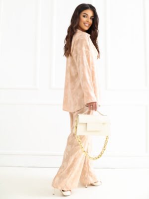 Marškiniai: • Krūtinė – 122 cm • Ties klubais – 130 cm • Rankovių ilgis – 44 cm (nuo siūlės) • Bendras ilgis – 73 cm Kelnės: • Liemuo – 68 – 80 cm (ištempus) • Klubai – 104 cm • Vidinė siūlė – 72 cm • Kelnių ilgis – 105 cm |
