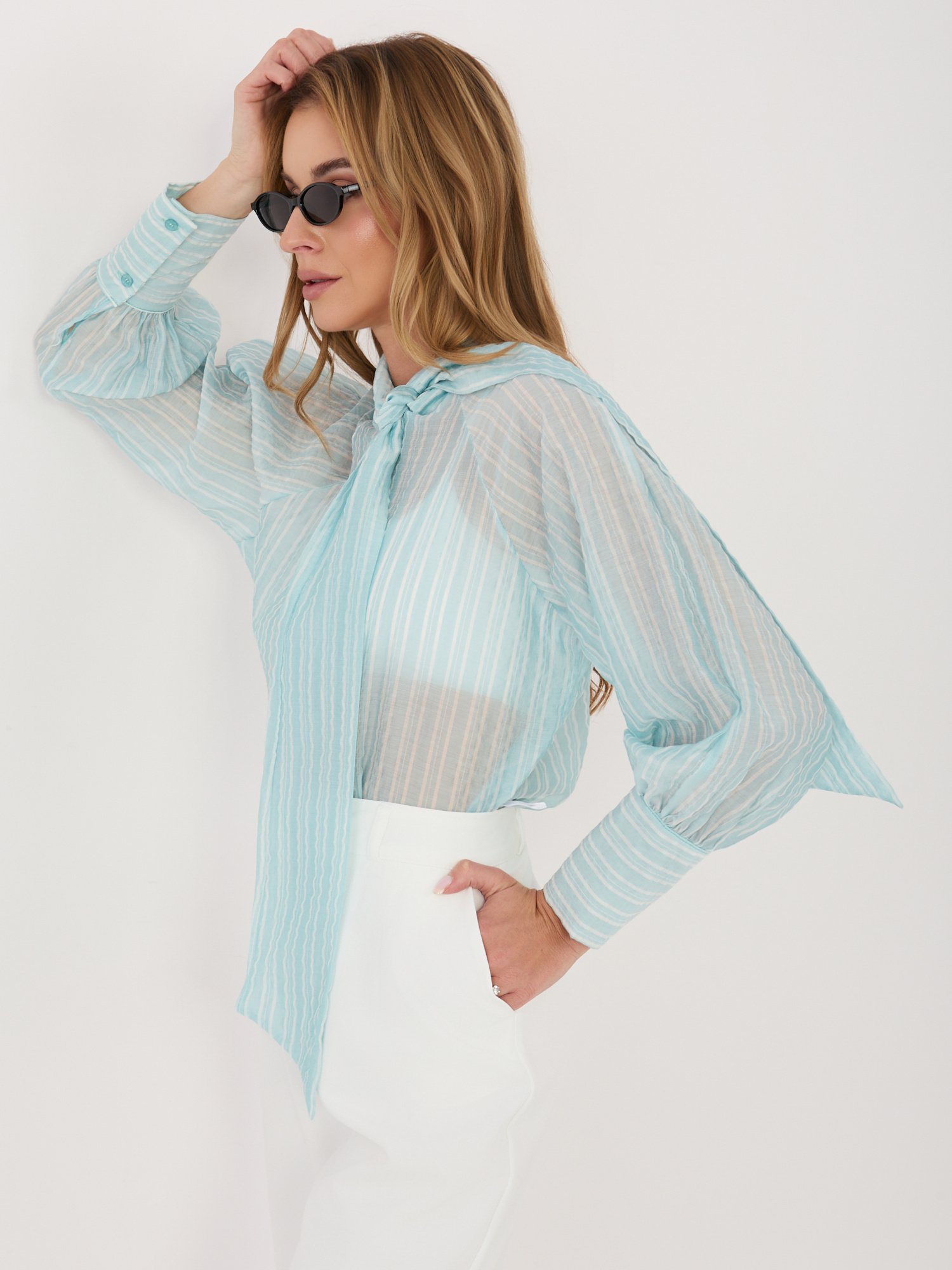 Modelis dėvi VIENO DYDŽIO drabužį