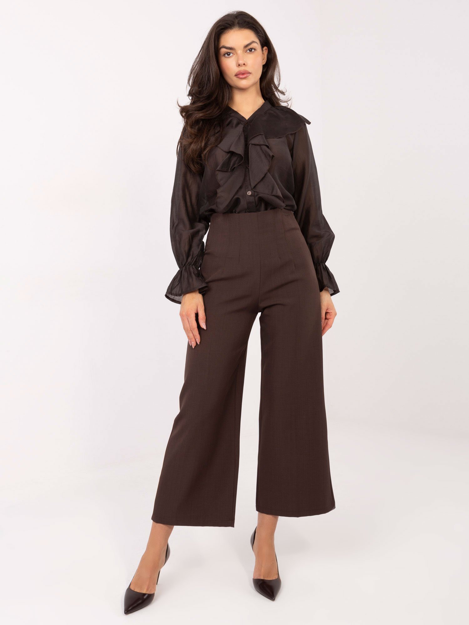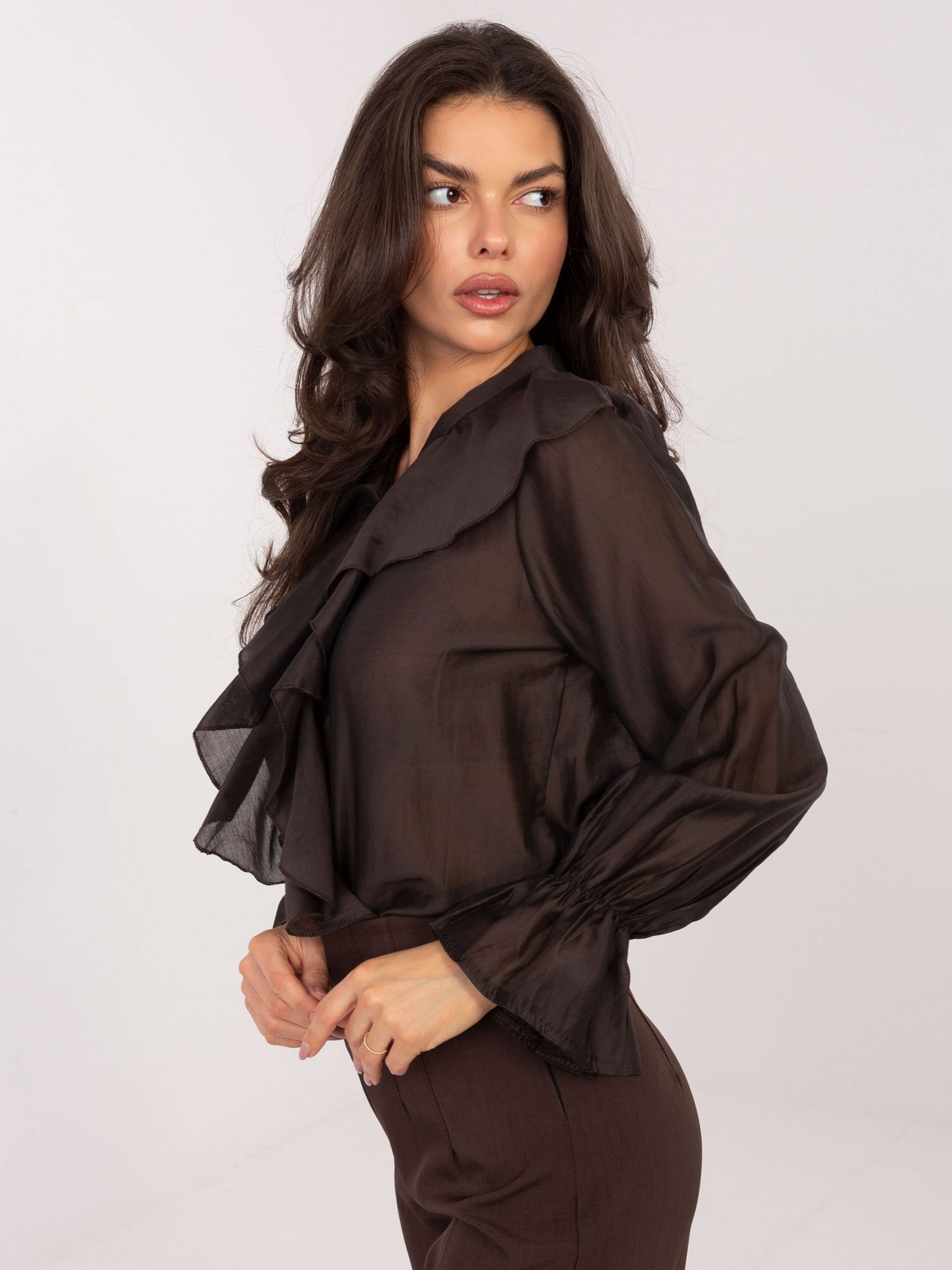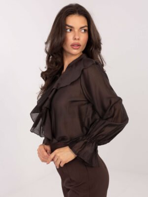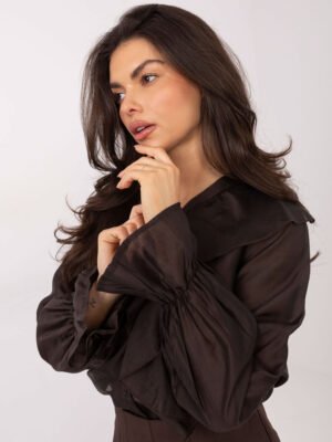 Lengvo audinio marškiniai dekoruoti raukiniais “SILLA” tamsi ruda