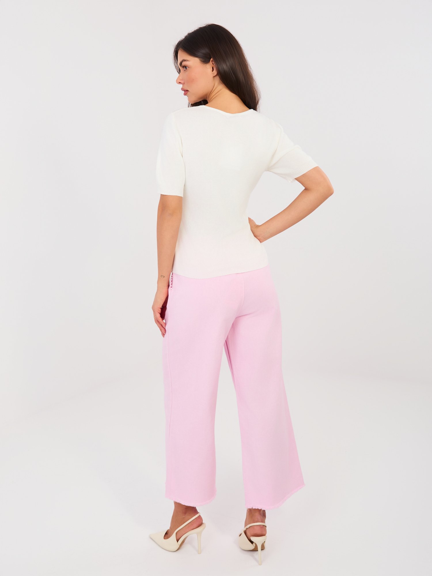 Modelis dėvi VIENO DYDŽIO (one size) laisvalaikio kelnes.