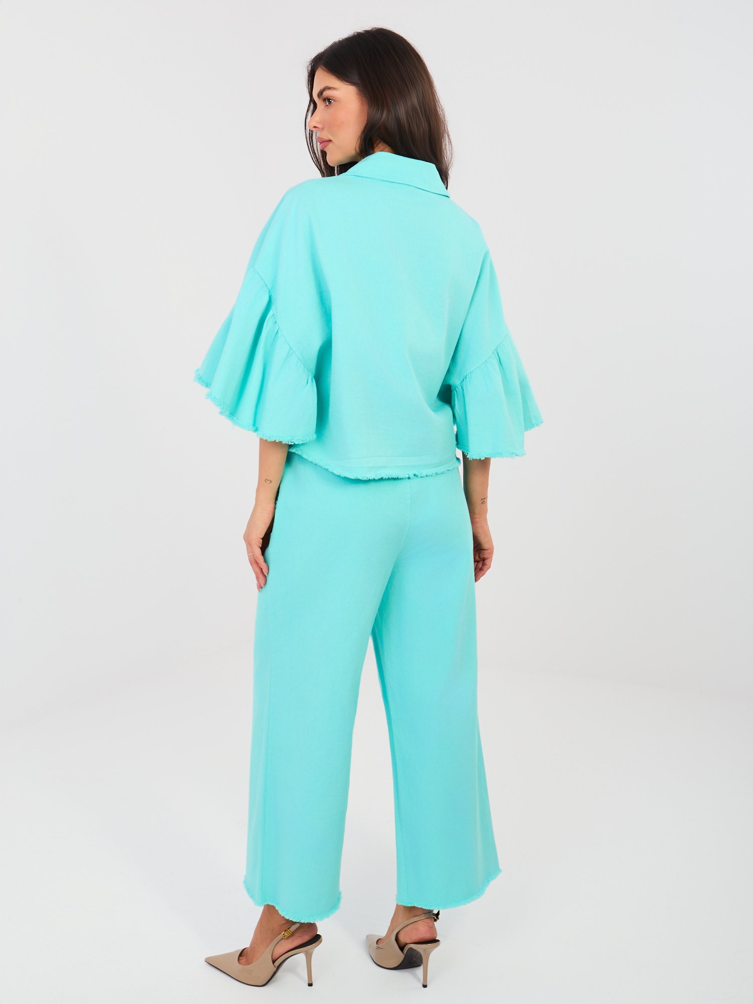 Modelis dėvi VIENO DYDŽIO (one size) laisvalaikio kelnes.