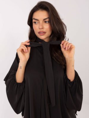 Elegantiški marškiniai su dekoratyvia kaspino juostele ir romantiškai krintančiomis pūstomis rankovėmis. Laisvesnis siluetas suteikia lengvumo, o švelnus audinys maloniai priglunda prie kūno. Puikus pasirinkimas tiek kasdienai, tiek išties ypatingoms akimirkoms.