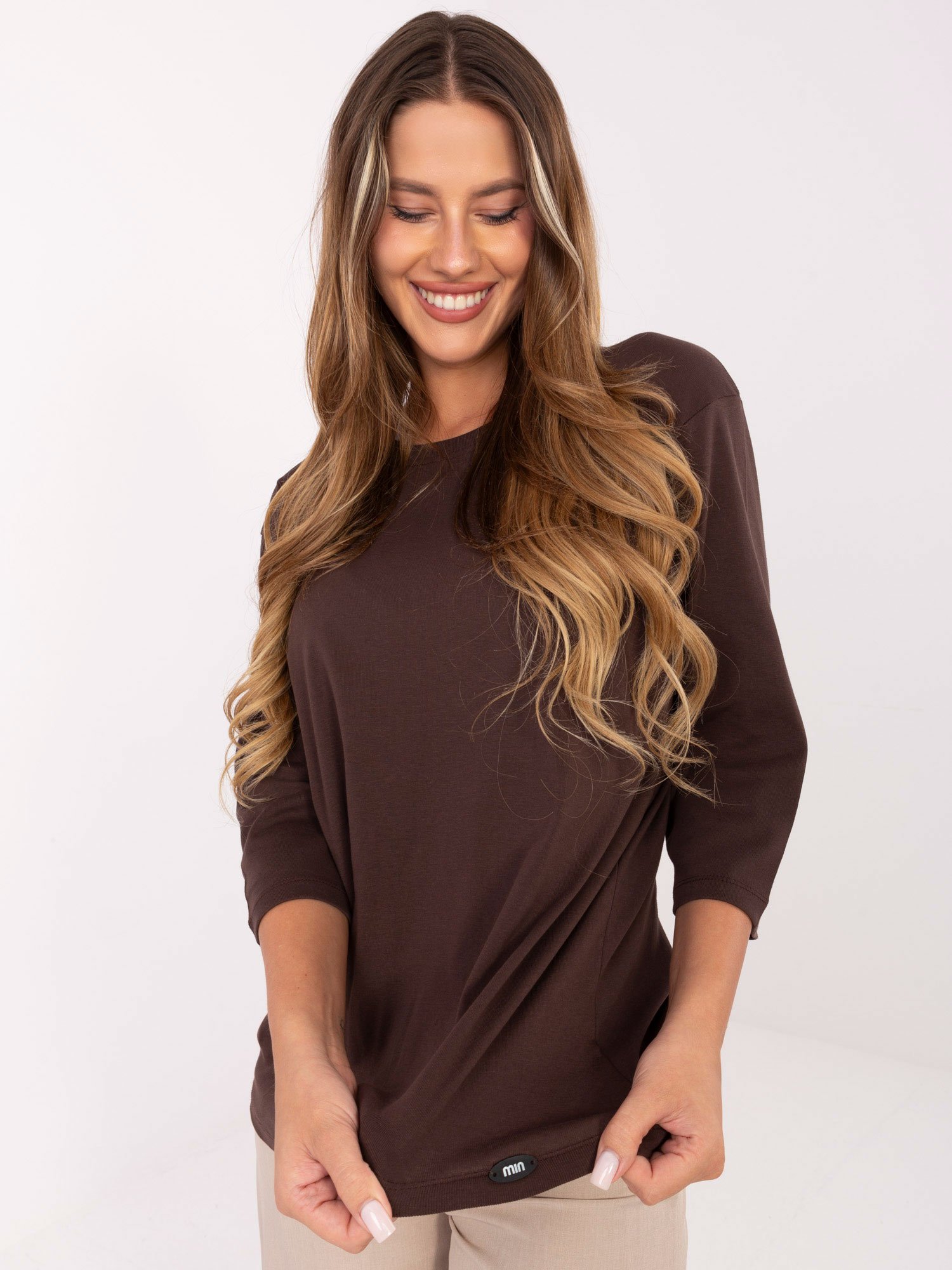 Medvilninė palaidinė su 3/4 rankovėmis “CELIN” tamsi ruda
