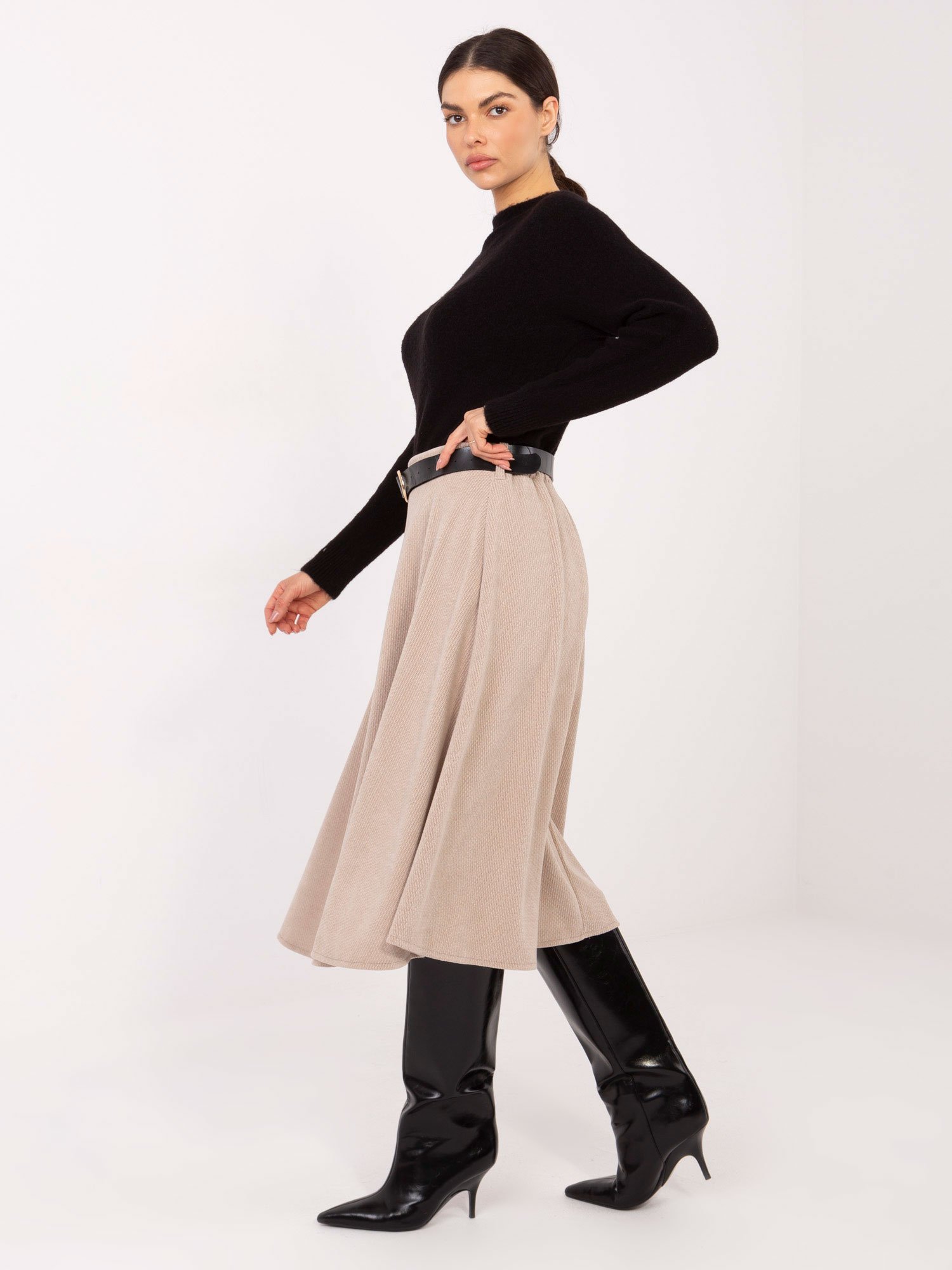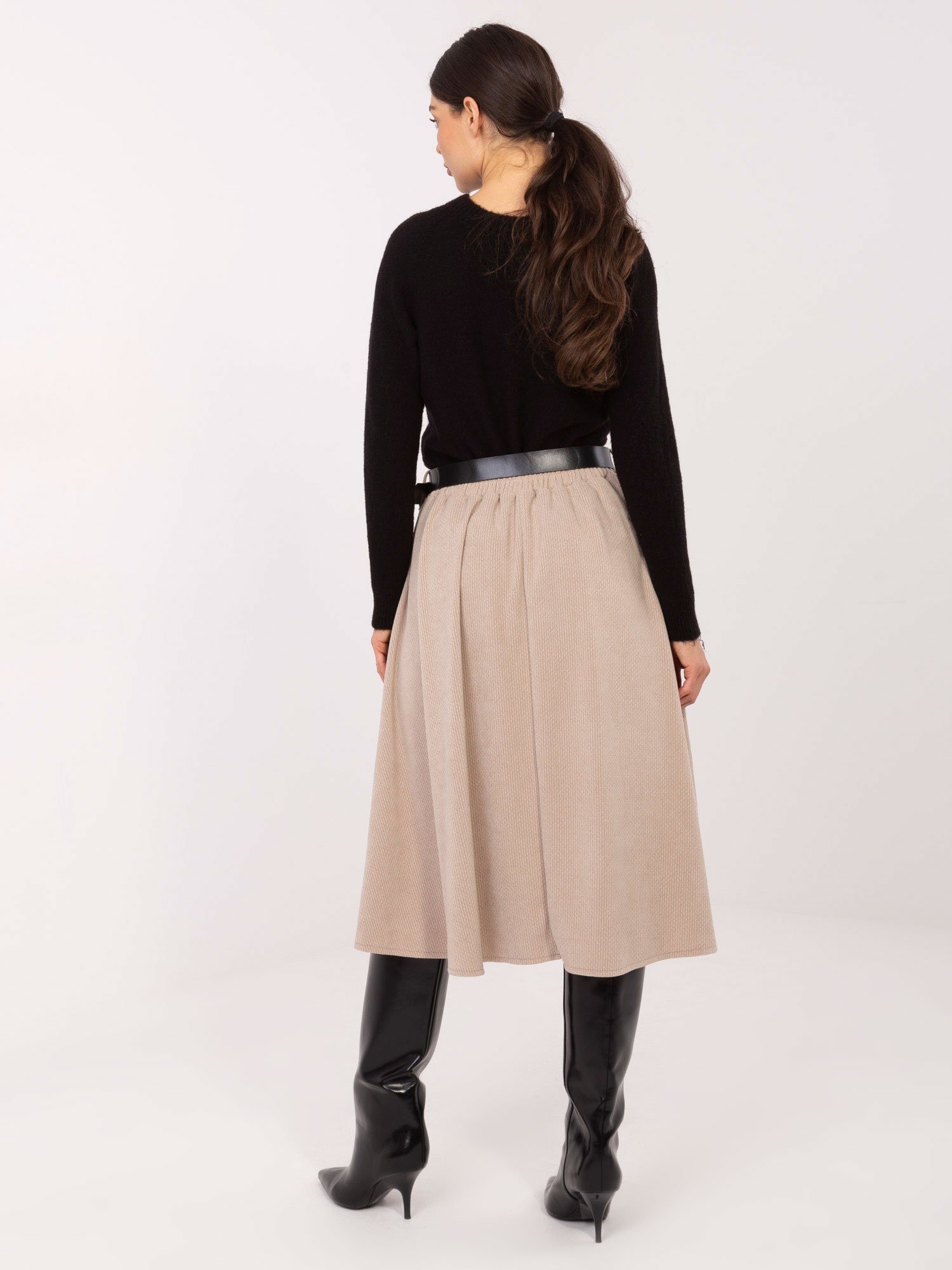 Minkšto audinio platėjantis midi sijonas su diržu “GIZELL” smėlio