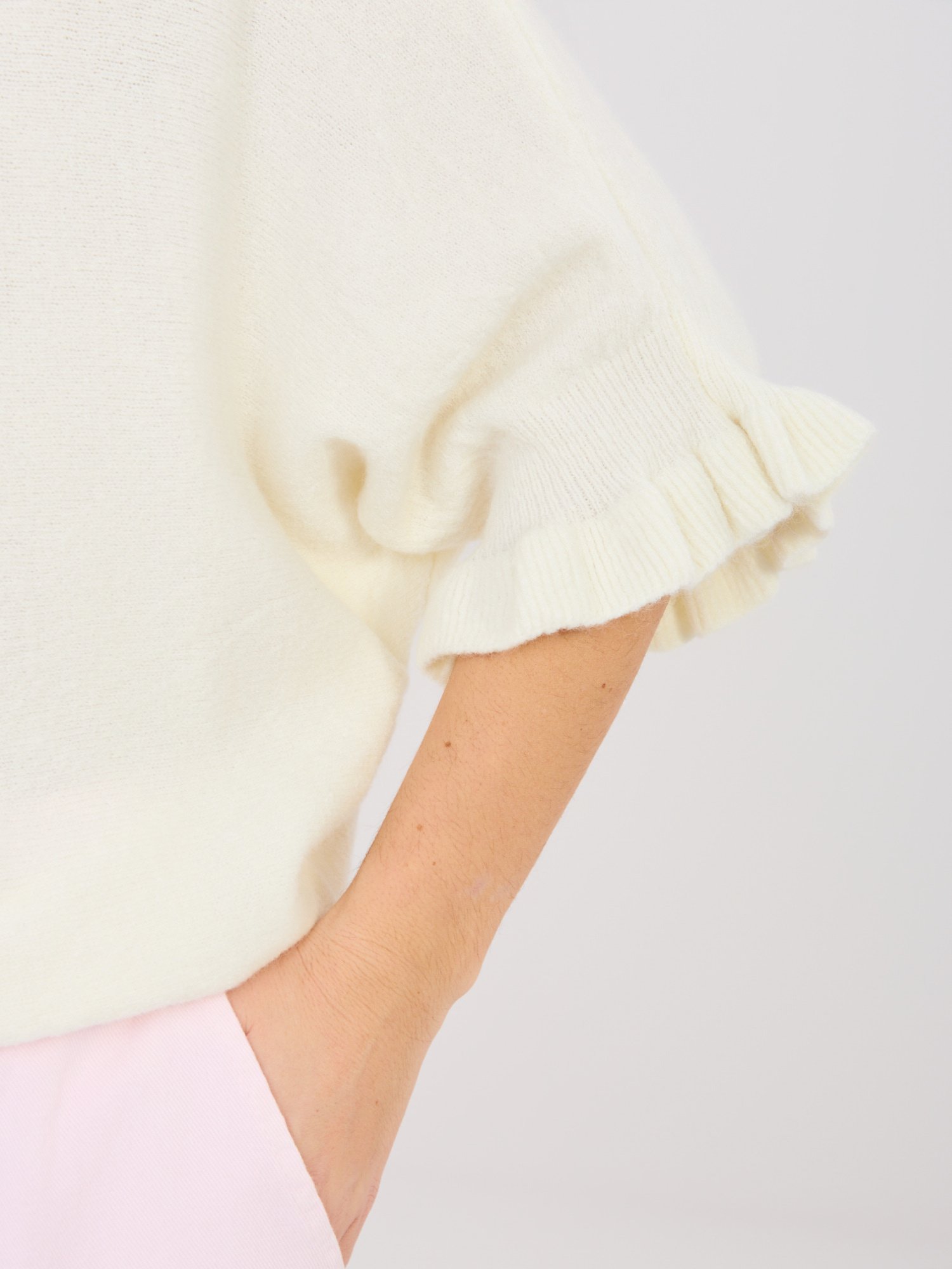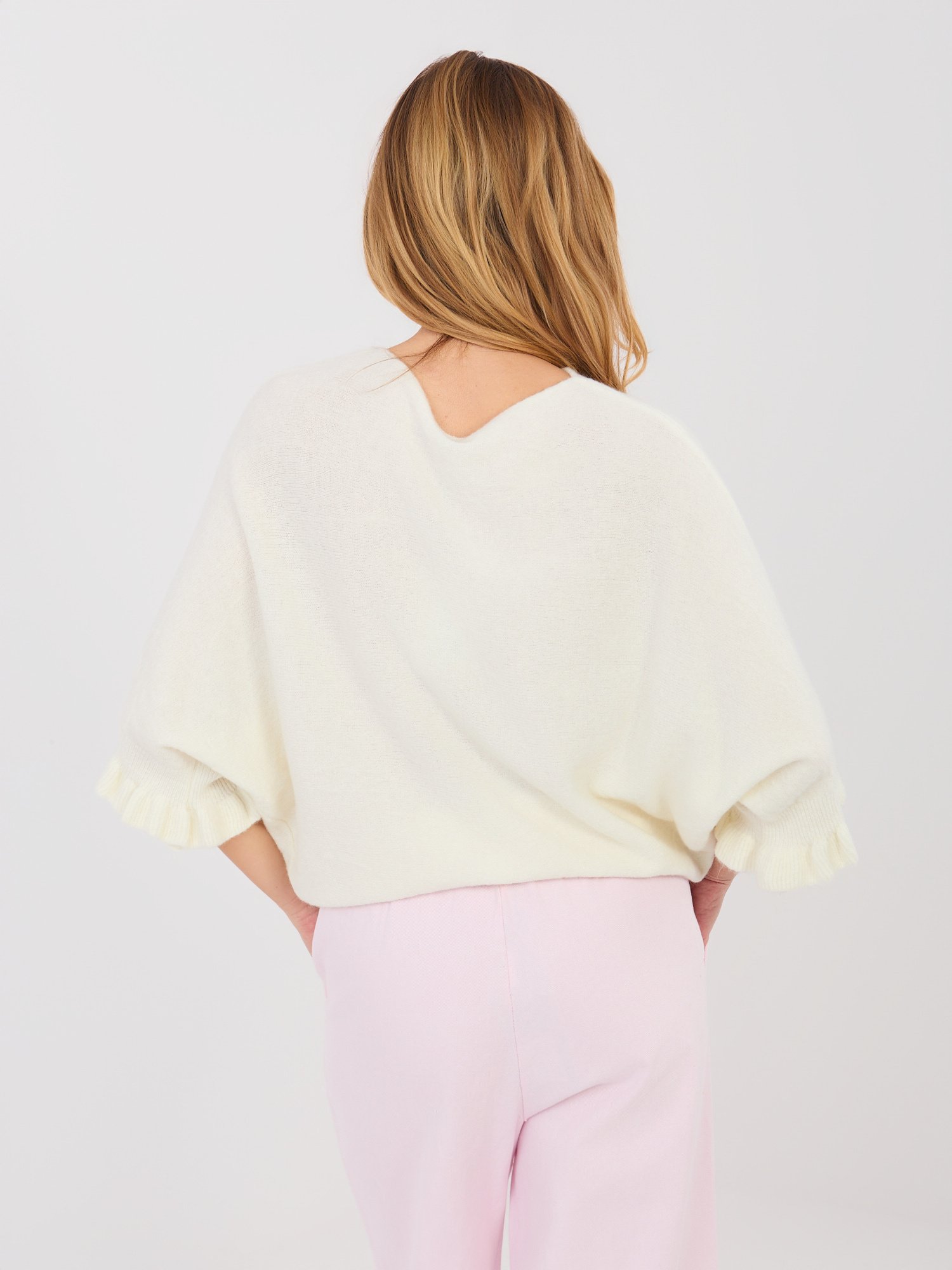 Megztinis su alpakos vilna ir 3/4 kimono tipo rankovėmis “Laila” pieno balta