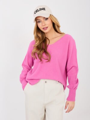 Megztinis su alpakos vilna ir V formos iškirpte “DAREEN” tamsi rožinė