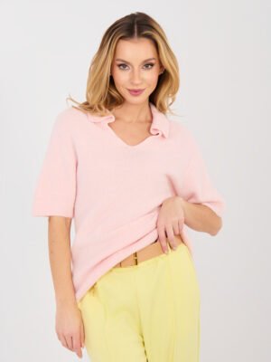 Megztinis trumpomis rankovėmis su dekoratyvia apykakle “ELSA” šviesi rožinė