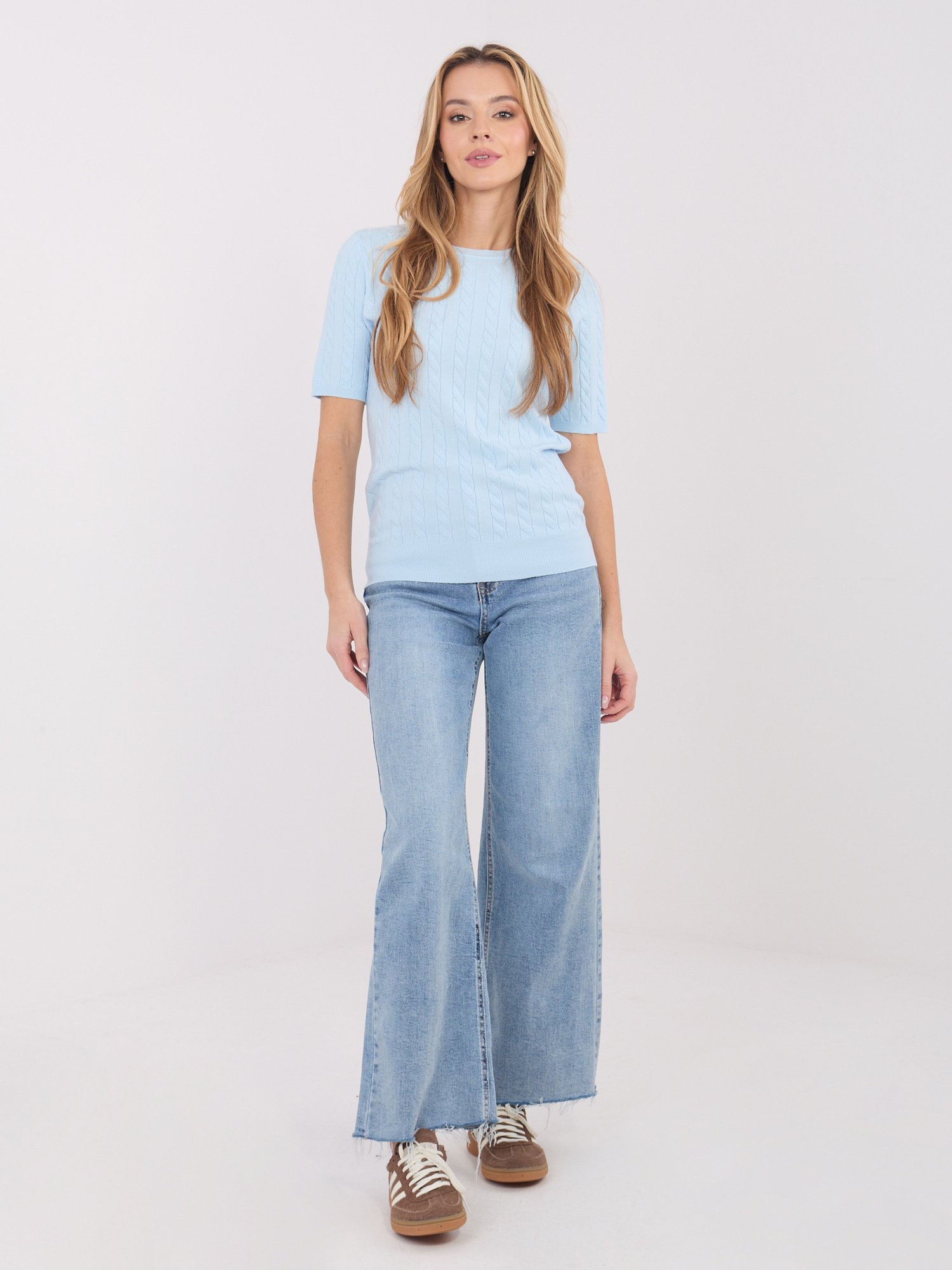 Megztukas trumpomis rankovėmis “ADRIA” šviesi mėlyna