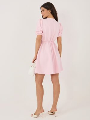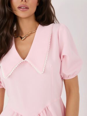 Mini suknelė su išraiškinga apykakle ir pūstomis rankovėmis “ARABELLA” šviesi rožinė